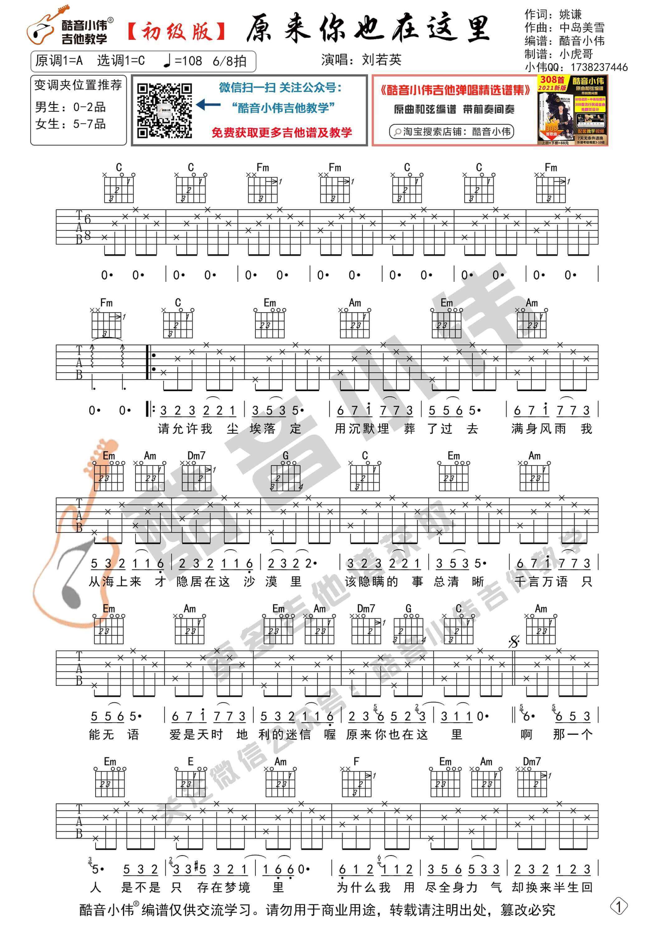琴谱网为您精心推荐 原来你也在这里 高清图谱