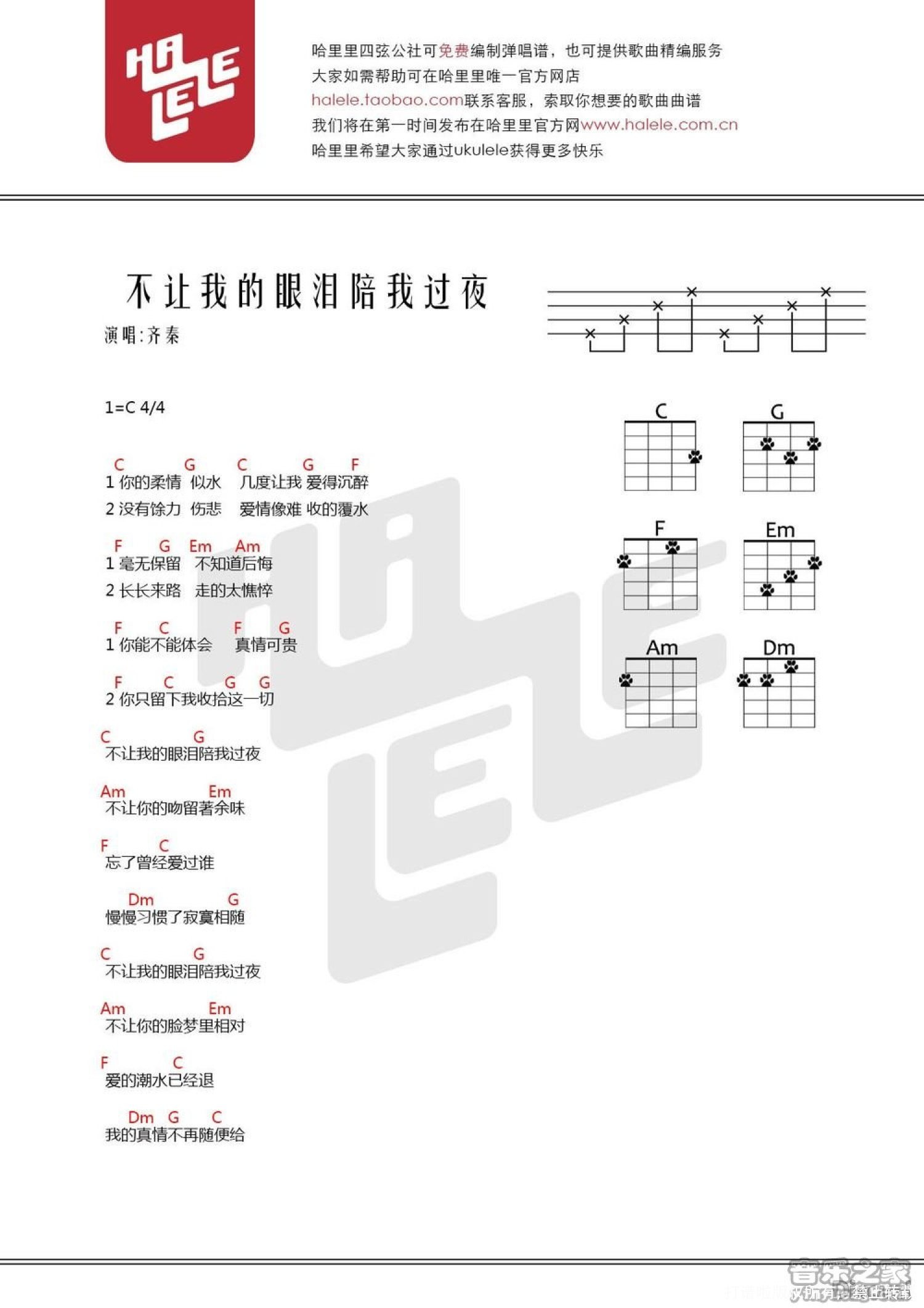 当前位置:琴谱网>尤克里里>不让我的眼泪陪你过夜