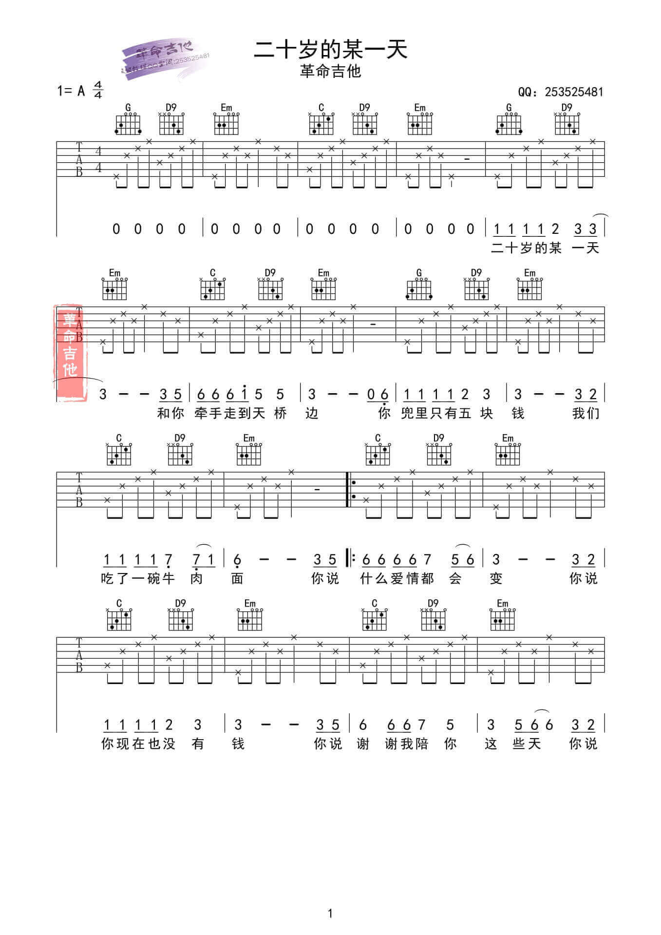 当前位置:琴谱网>吉他弹唱>二十岁的某一天