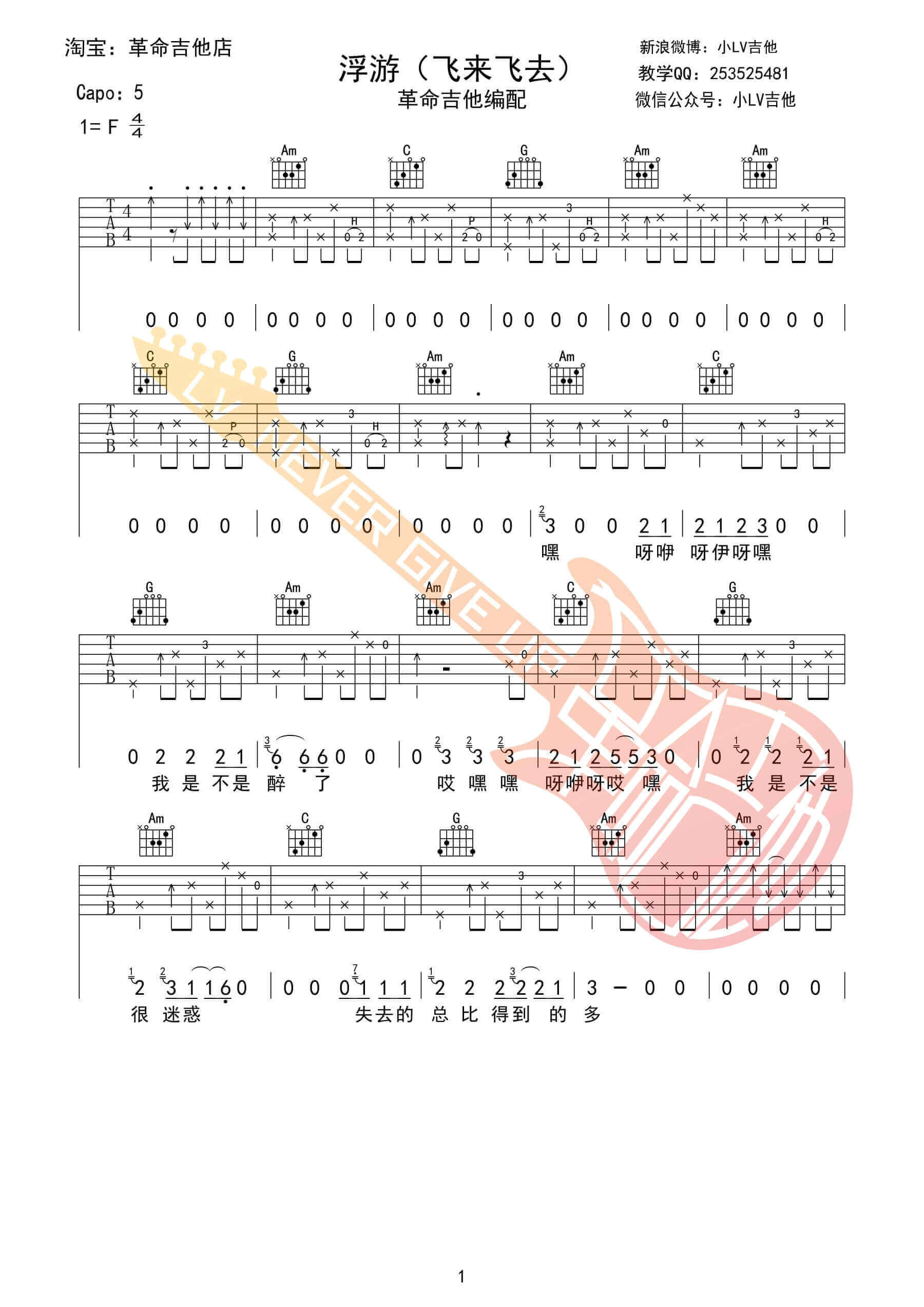 浮游吉他谱 - 革命吉他 - G调吉他弹唱谱