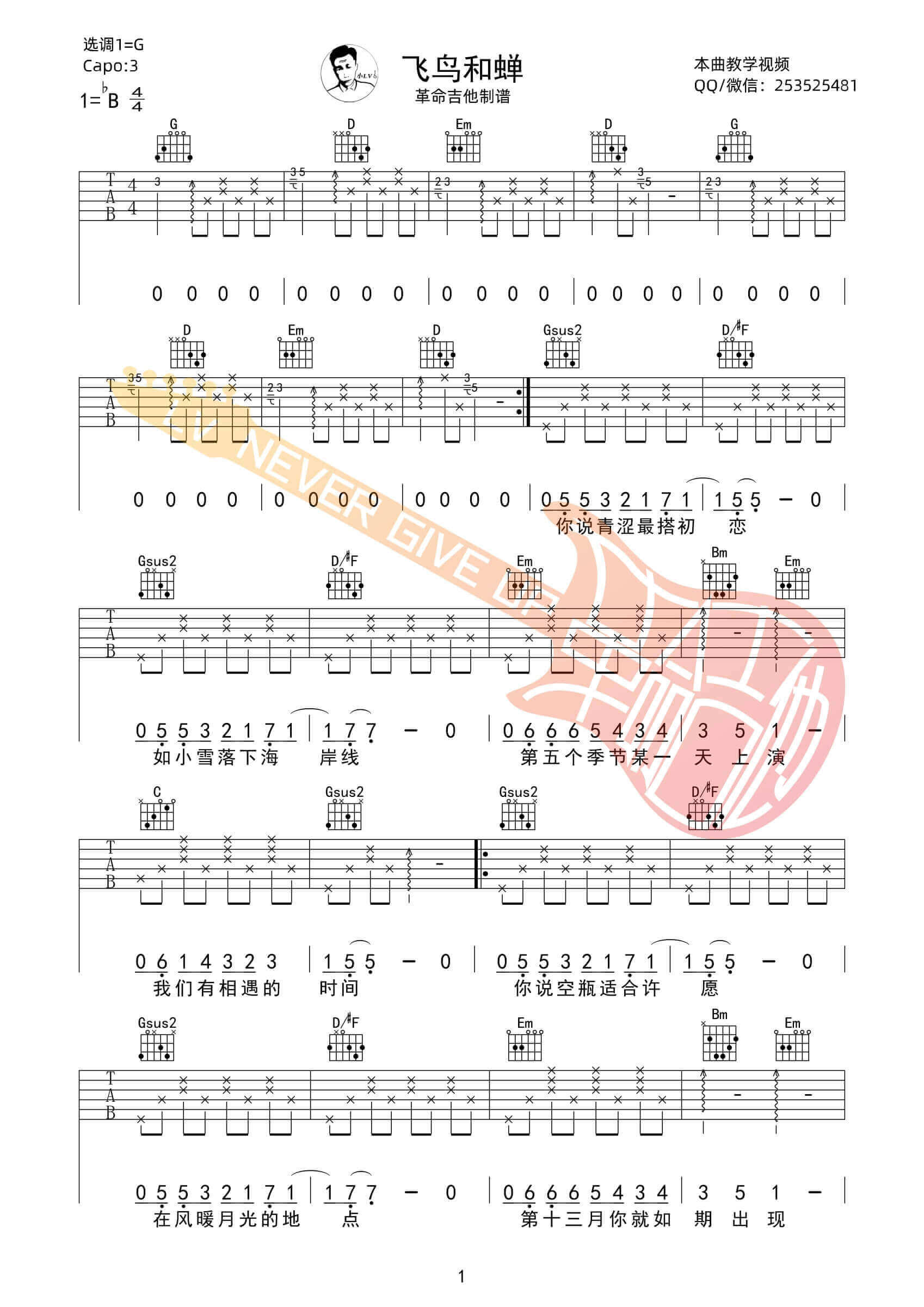 当前位置:琴谱网>吉他弹唱>飞鸟和蝉