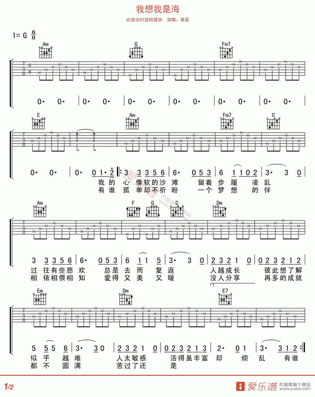 曲谱介绍: 我想我是海吉他谱由爱乐曲提供,采用了G调指法编配完成。第一次听这首歌,没想到是老戏骨黄磊演唱的,黄老师年起时的歌声还是非常有少年之感的,听着挺陌生的,这首歌曲唱得也挺悲情的,看歌词,我想我是海,无人理解,无人安慰,这首歌曲呢旋律起伏不大,也许是通过这种方式来显现那种落寞孤寂之感吧。不过可能时代发展吧,这种歌曲能不太符合当代年轻人的听歌要求。除了这首谱以外,爱情转移吉他谱也非常不错,速度去围观一下吧!