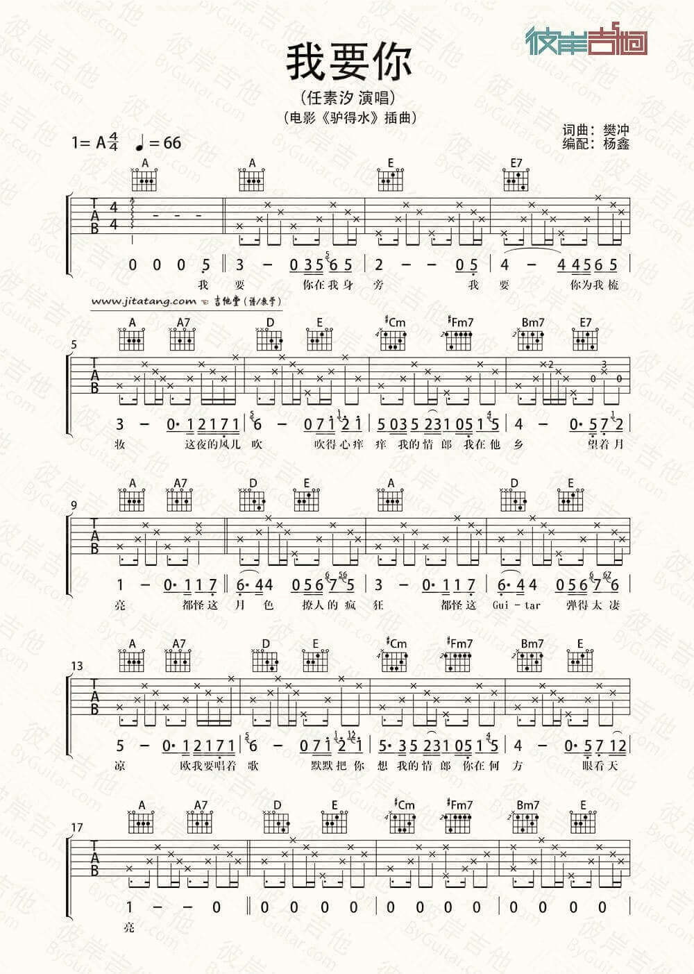 当前位置:琴谱网>吉他弹唱>我要你