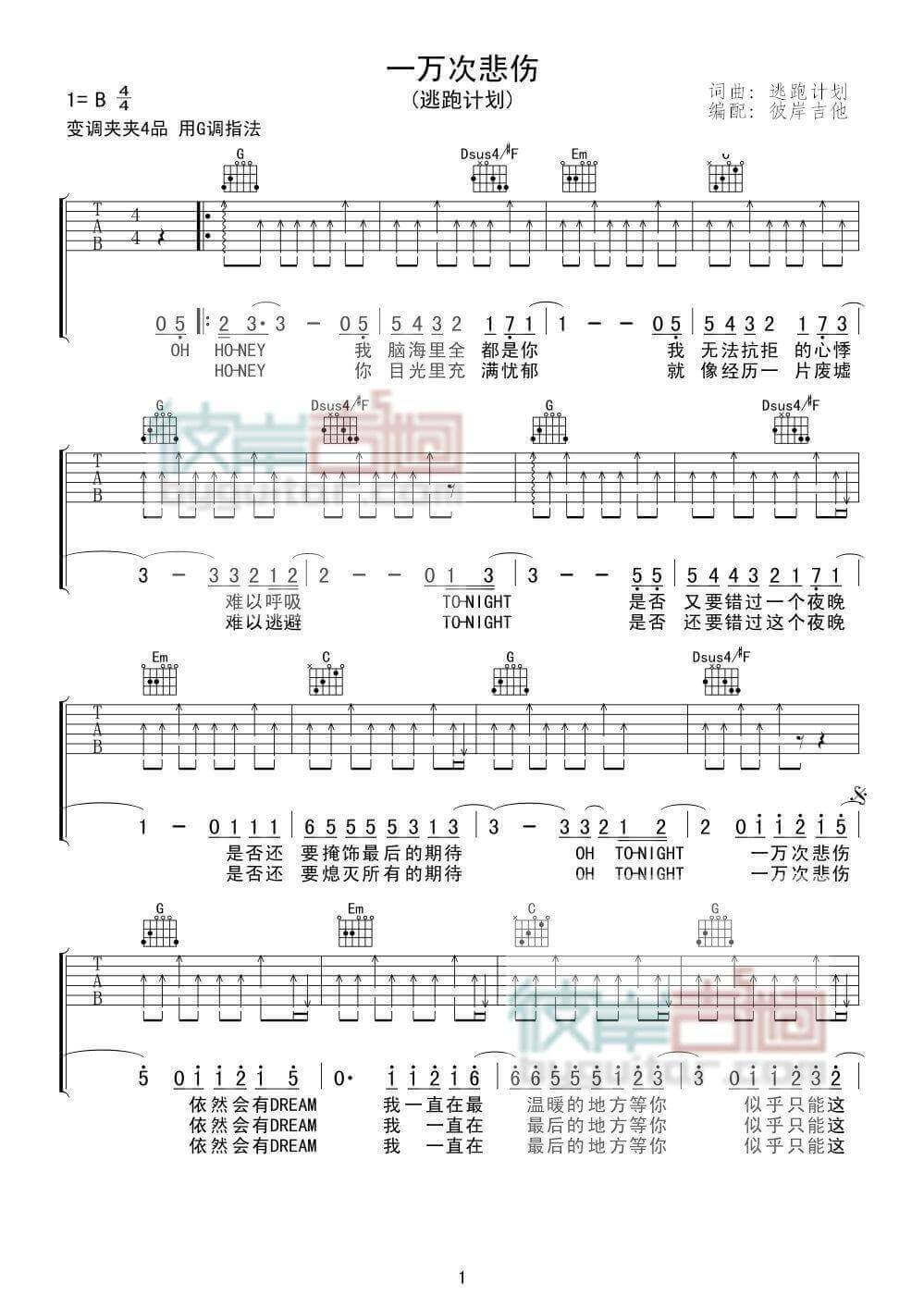 一万次悲伤吉他谱 - 逃跑计划 - G调吉他弹唱谱