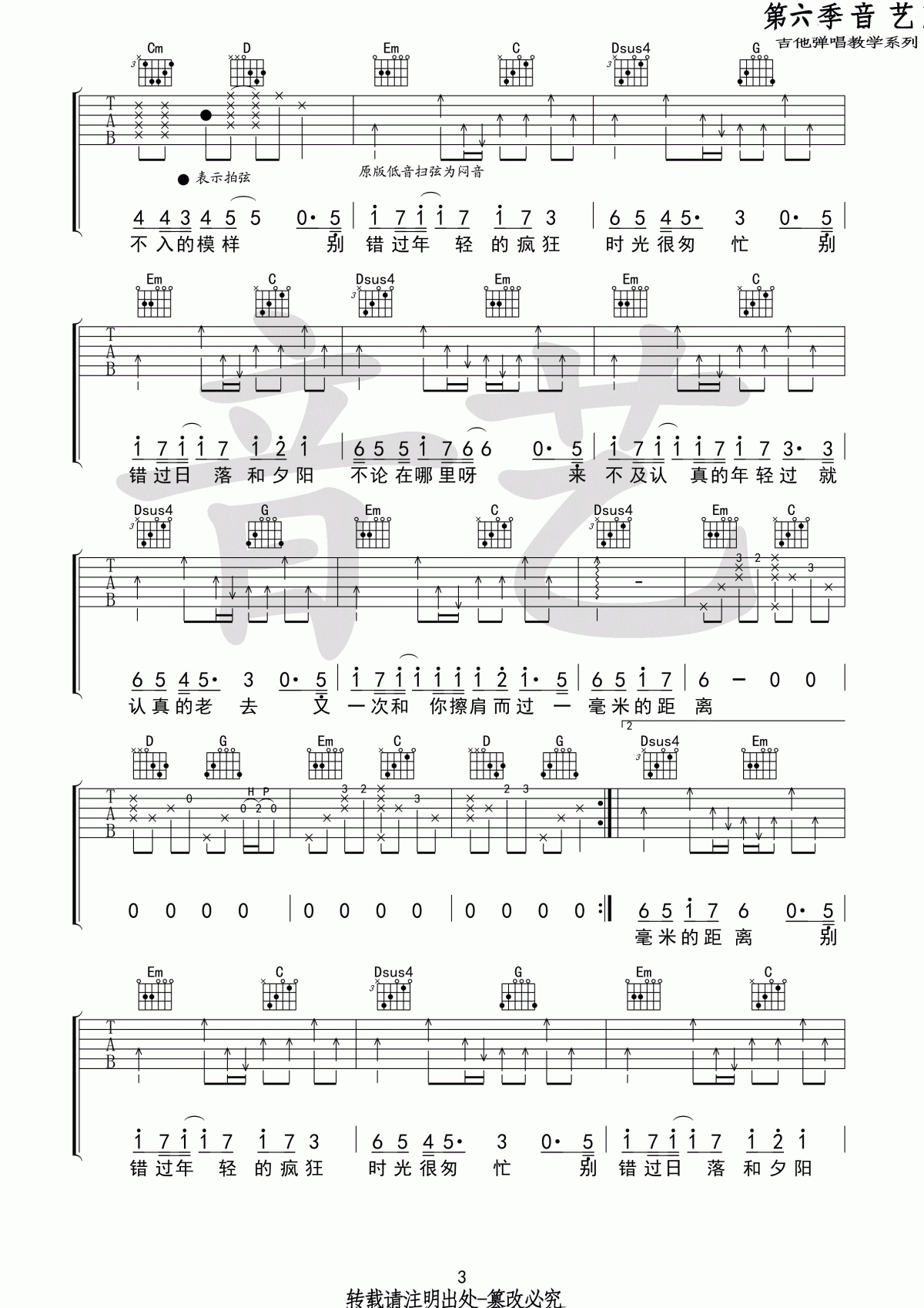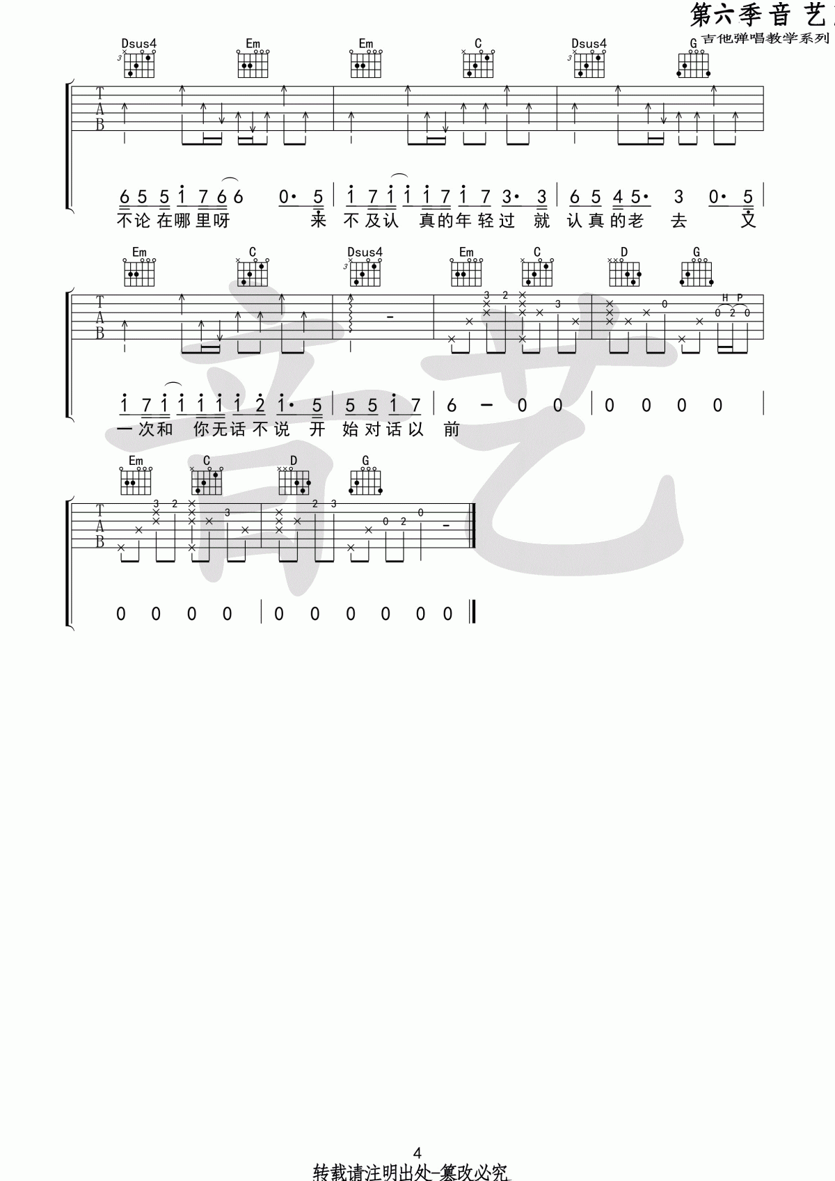 曲谱介绍: 《认真的老去原版》吉他弹唱谱,采用G调指法编配原版,共有4张高清图谱。