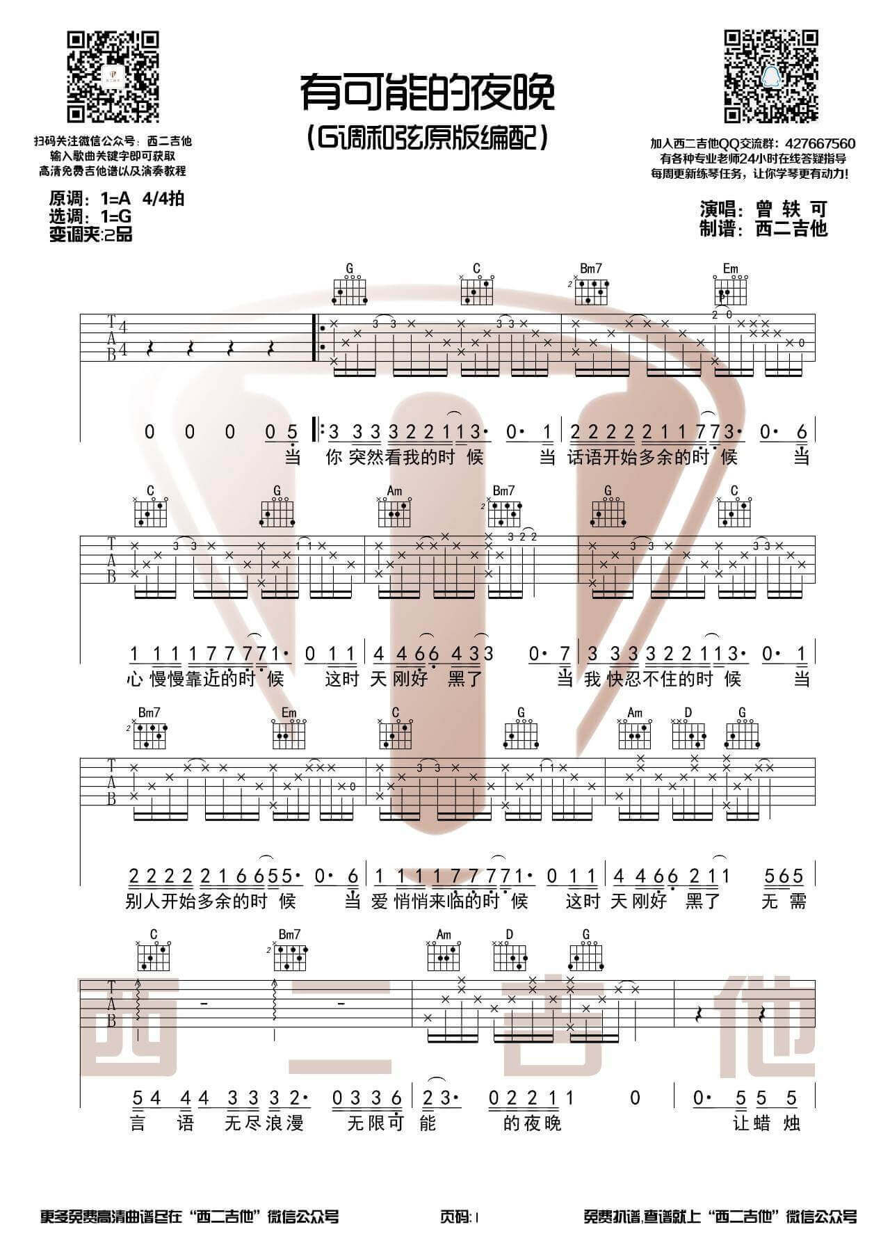 有可能的夜晚吉他谱 - 曾轶可 - G调吉他弹唱谱