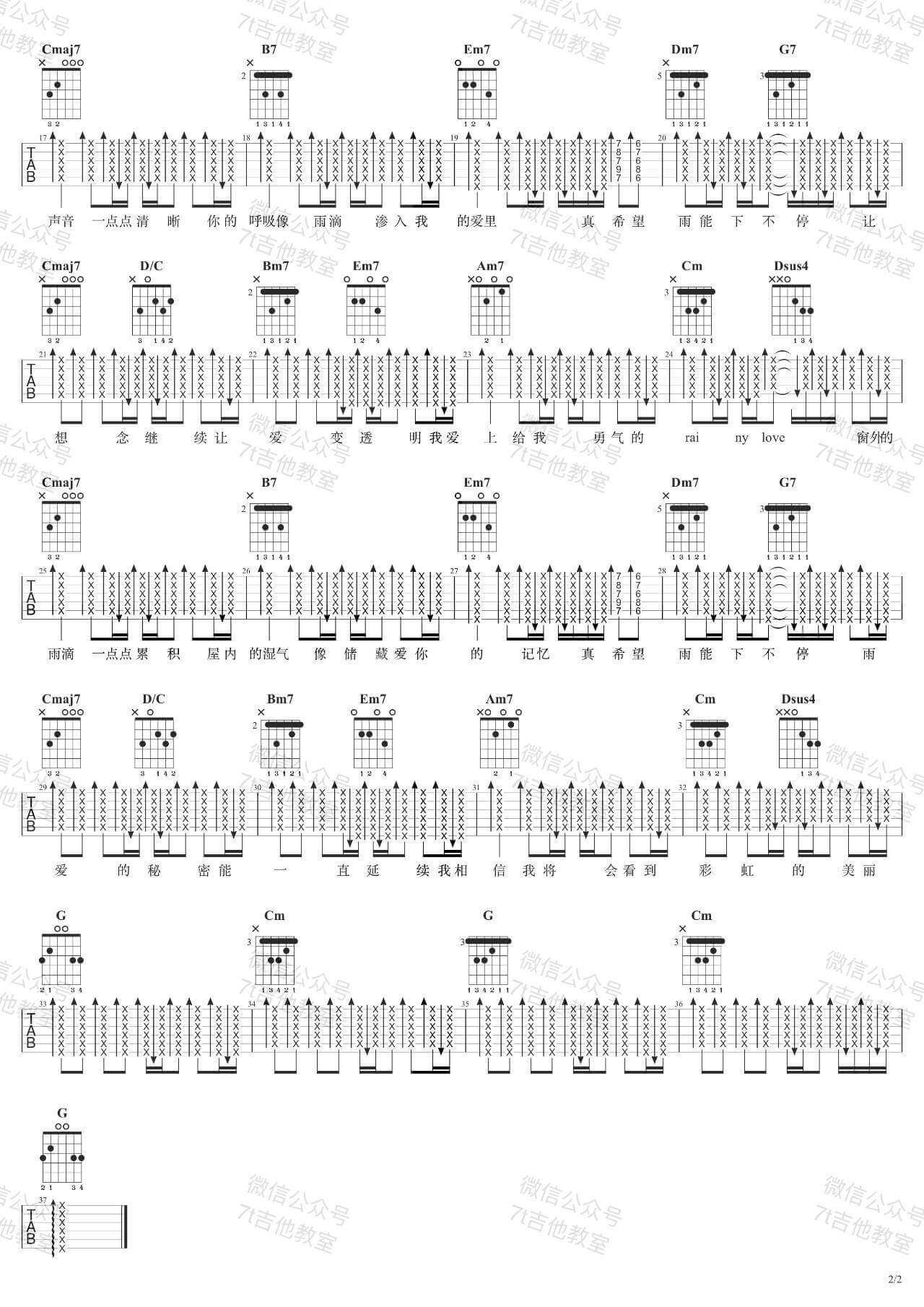 曲谱介绍: 雨爱吉他谱由7t吉他教室编配完成,采用了G调指法,TIPS:在这里向大家推介另外一首,它就是四季予你吉他谱啦,非常动听的一首曲子! 吉他弹唱演示及视频教学