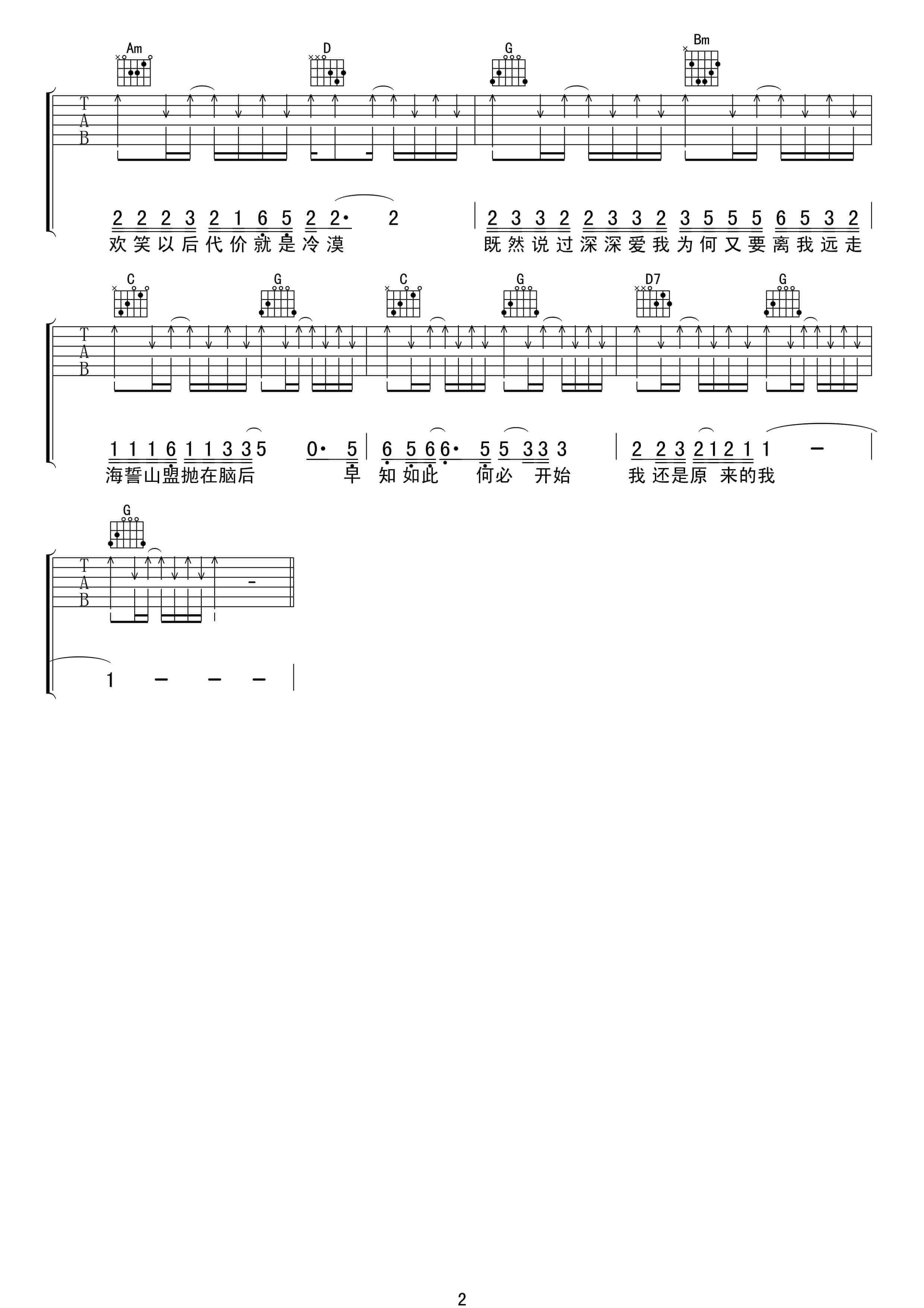 原来的我吉他谱 - 齐秦 - G调吉他弹唱谱
