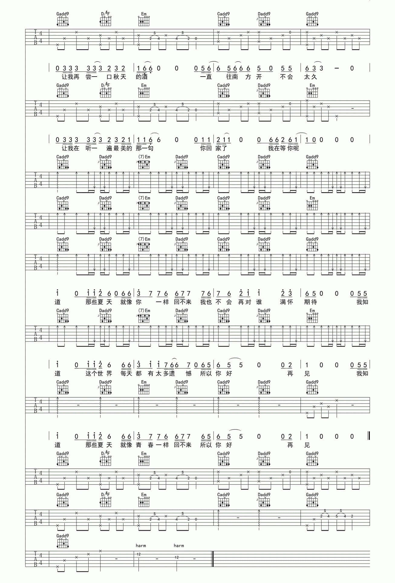 曲谱介绍: 安河桥吉他谱采用了G调指法编配。多想再看你一遍从南到北,多温柔的一句话呀。想看着你,想见你。但是为什么不是从东到西呢哈哈哈。不管这么样每次听到这句话都好温柔哦。加上鼓的声音,唱出来,简直融化了。在听的时候往往会产生一些不可言喻的共鸣吧,就算没有经历什么刻苦铭心的爱情,也能感受到歌曲里包容的温柔,也能感受到一丝凄美,也能感受到回忆的美好,让人着迷呀。听兄弟说,好想爱这个世界吉他谱听了耳朵会怀孕,快快学起来,学完去撩妹!