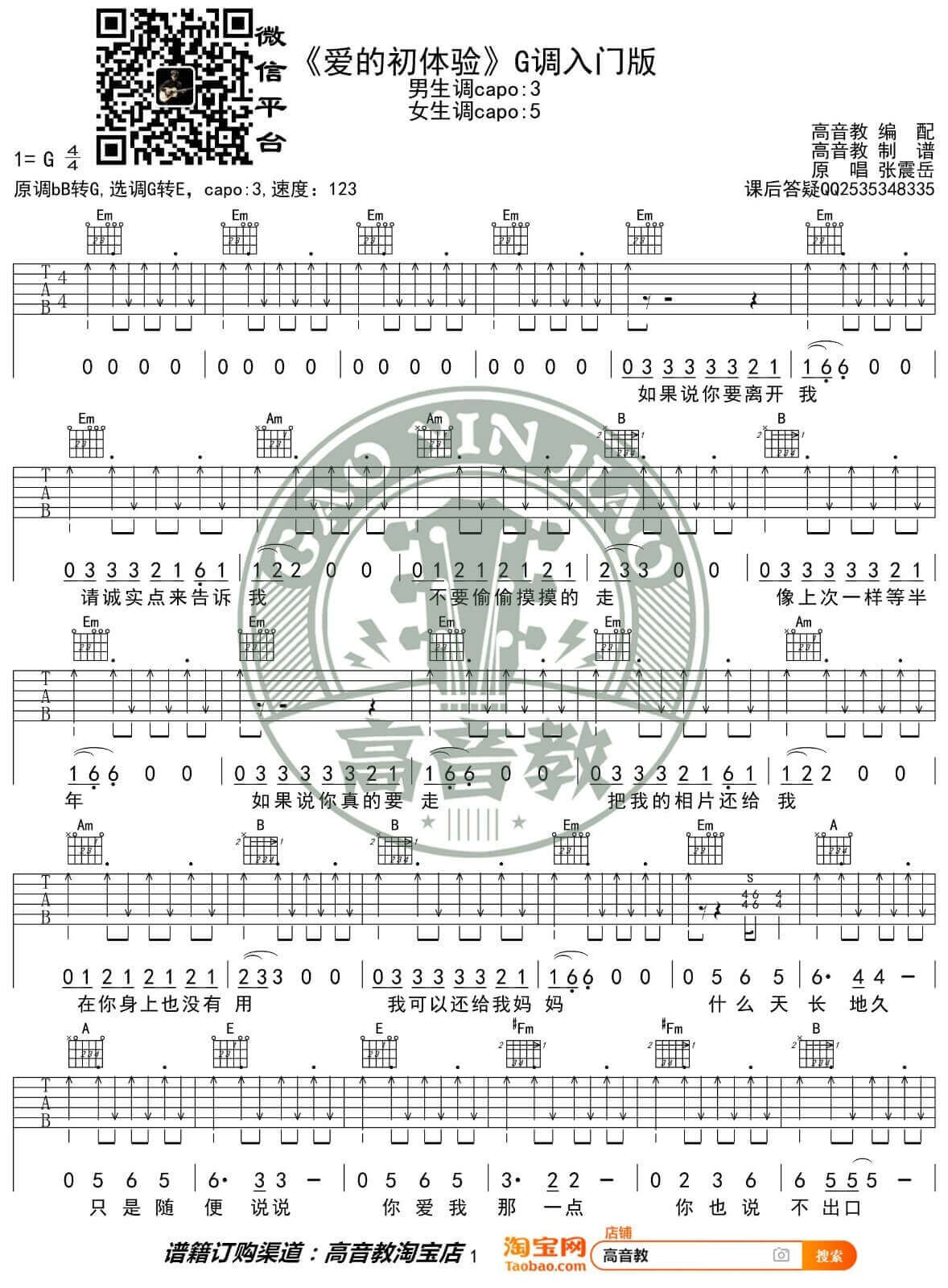 爱的初体验吉他谱 - 张震岳 - G调吉他弹唱谱