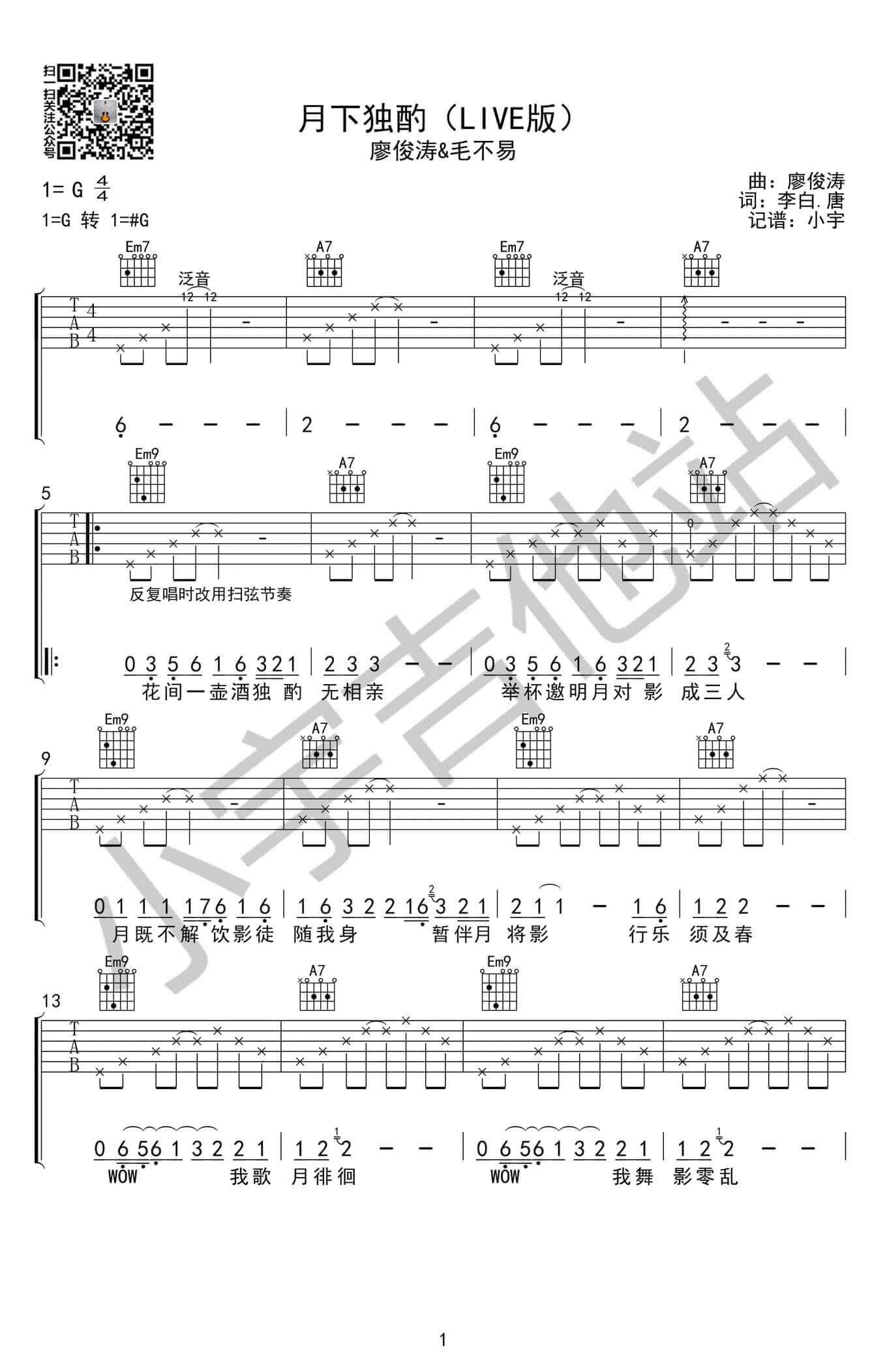当前位置:琴谱网>吉他弹唱>月下独酌