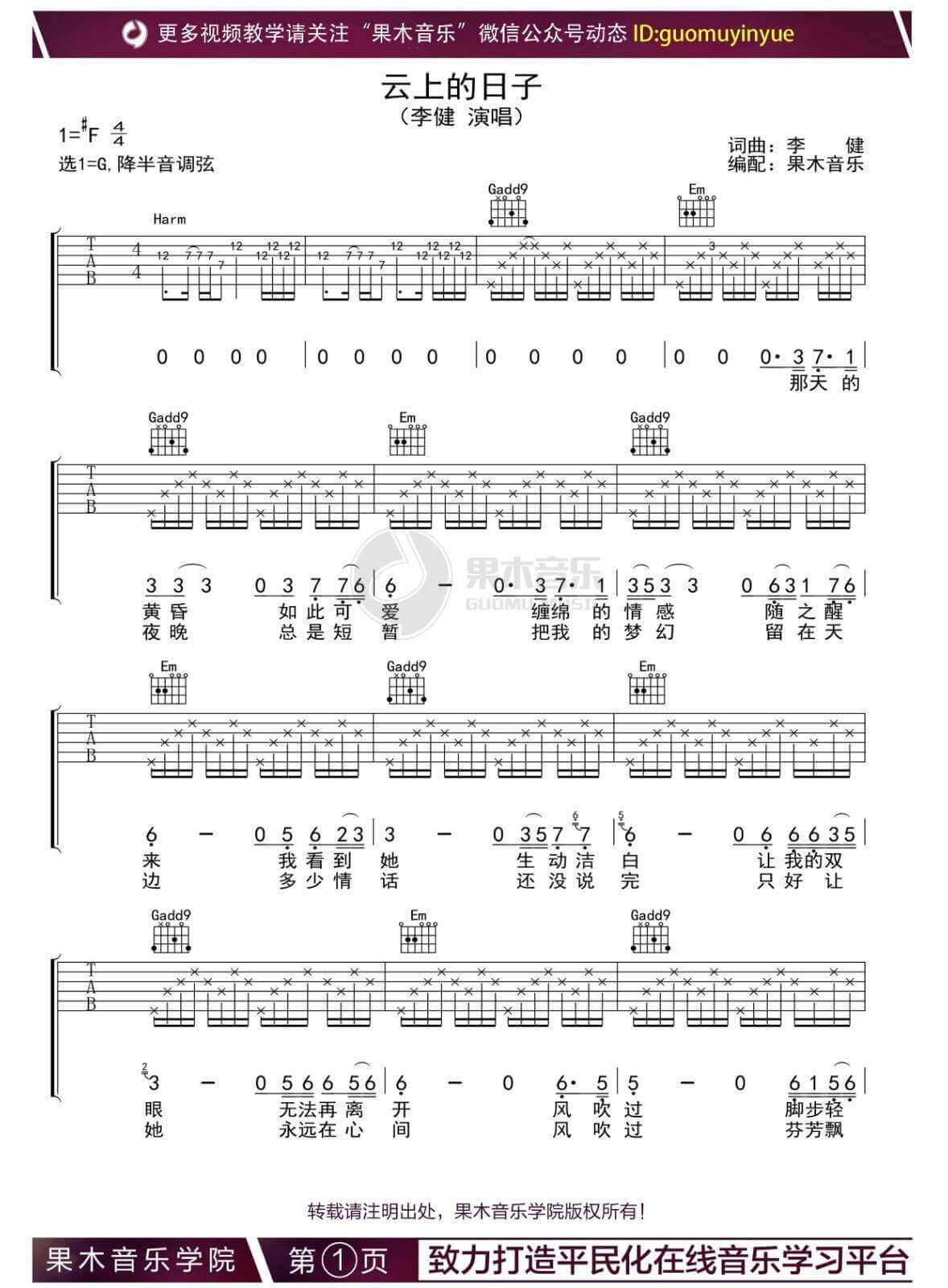 当前位置:琴谱网>吉他弹唱>云上的日子