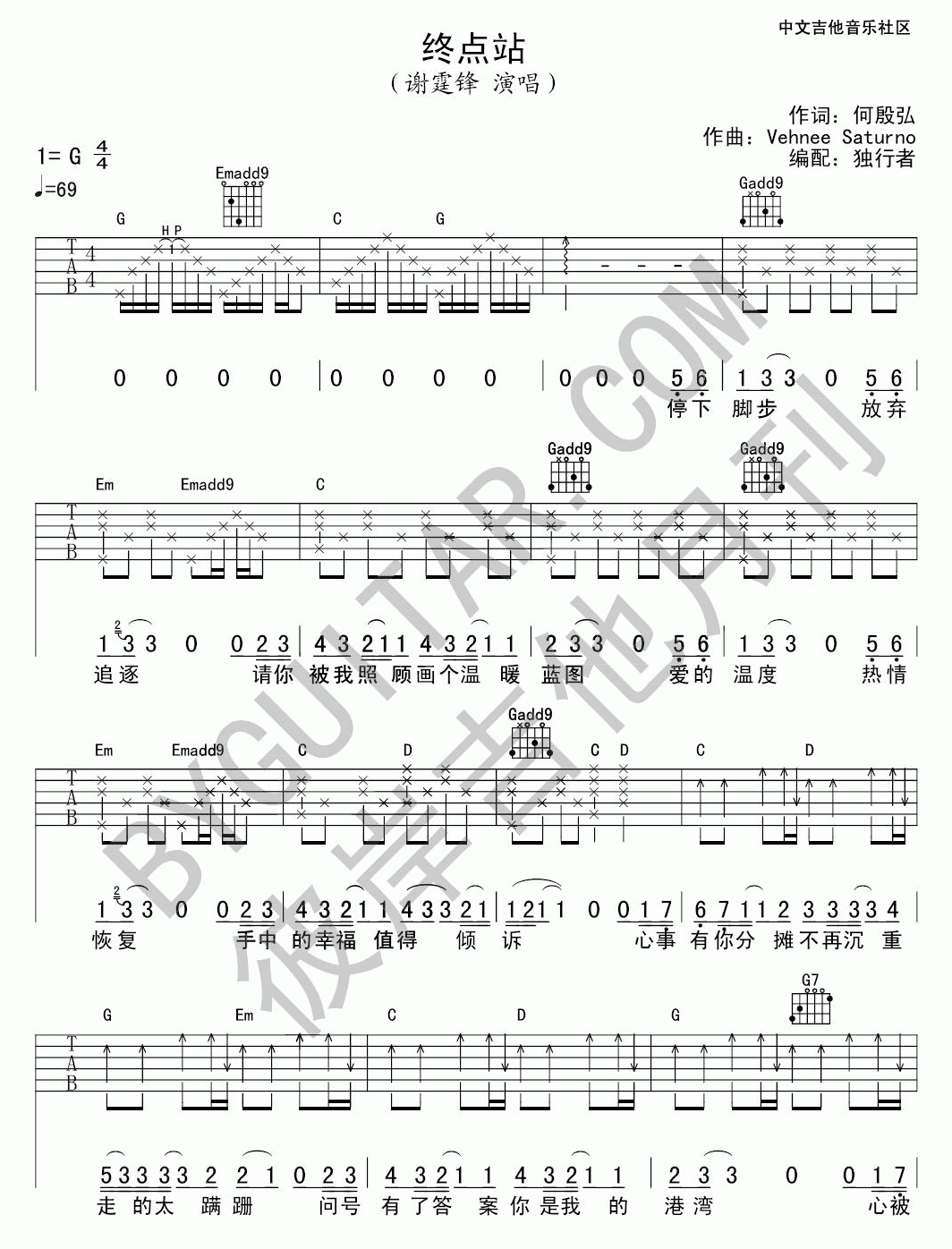 终点站吉他谱 - 谢霆锋 - G调吉他弹唱谱