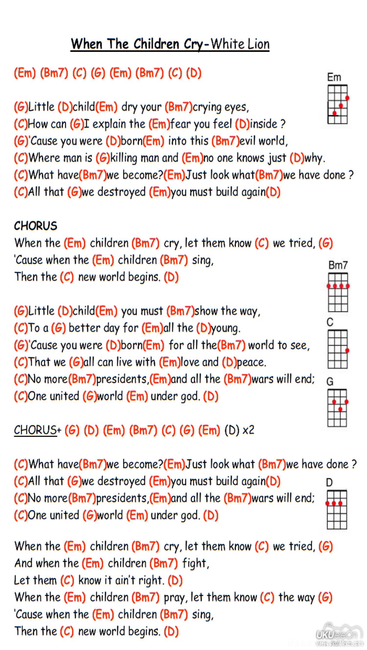 曲谱介绍: 《whenthechildrencry》ukulele谱