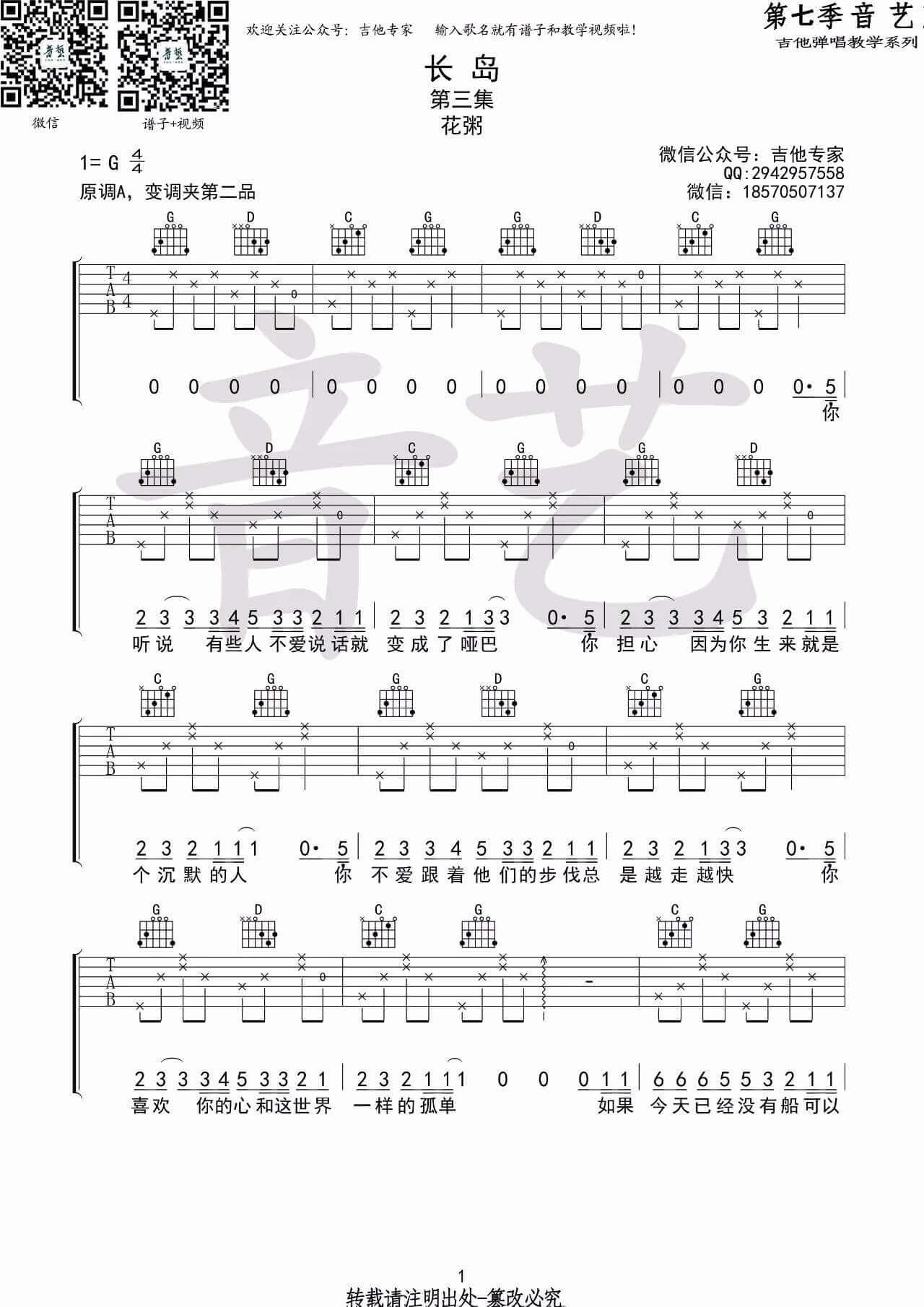 长岛吉他谱 - 花粥 - G调吉他弹唱谱