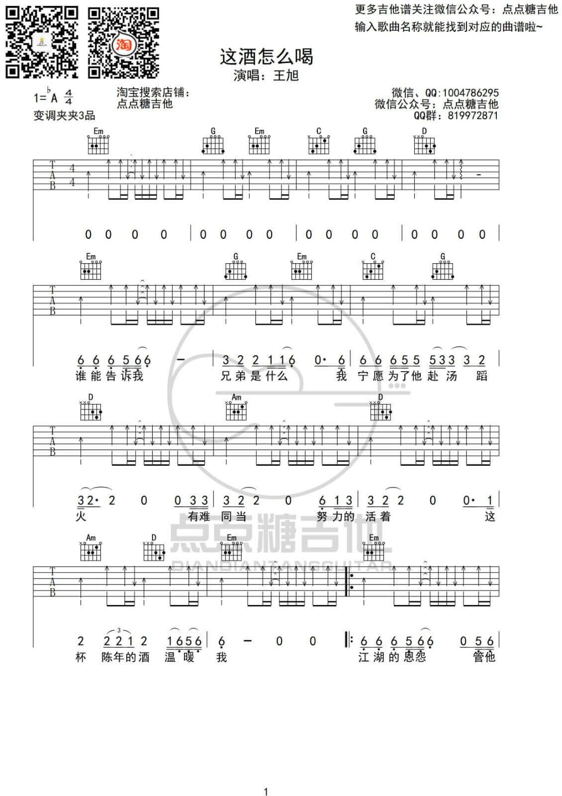 这酒怎么喝吉他谱 - 王旭 - A调吉他弹唱谱