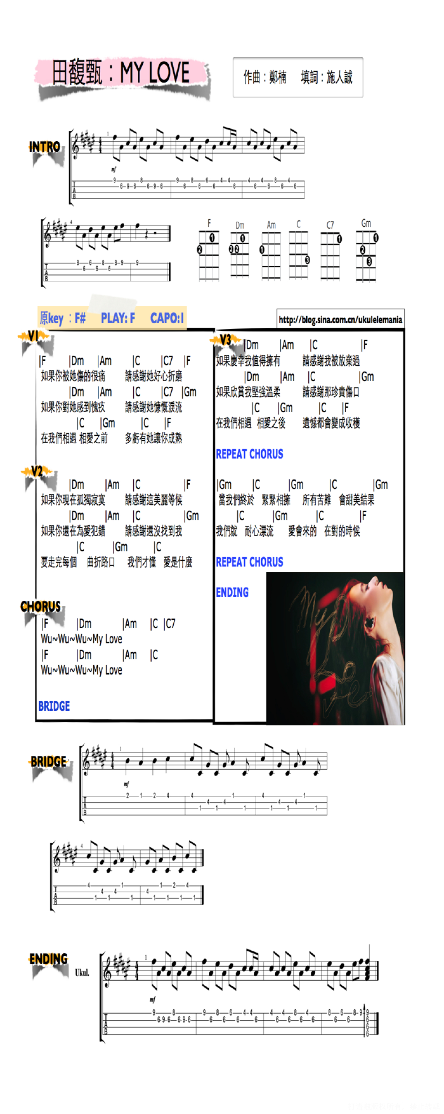 曲谱介绍: 《mylove》田馥甄ukulele谱