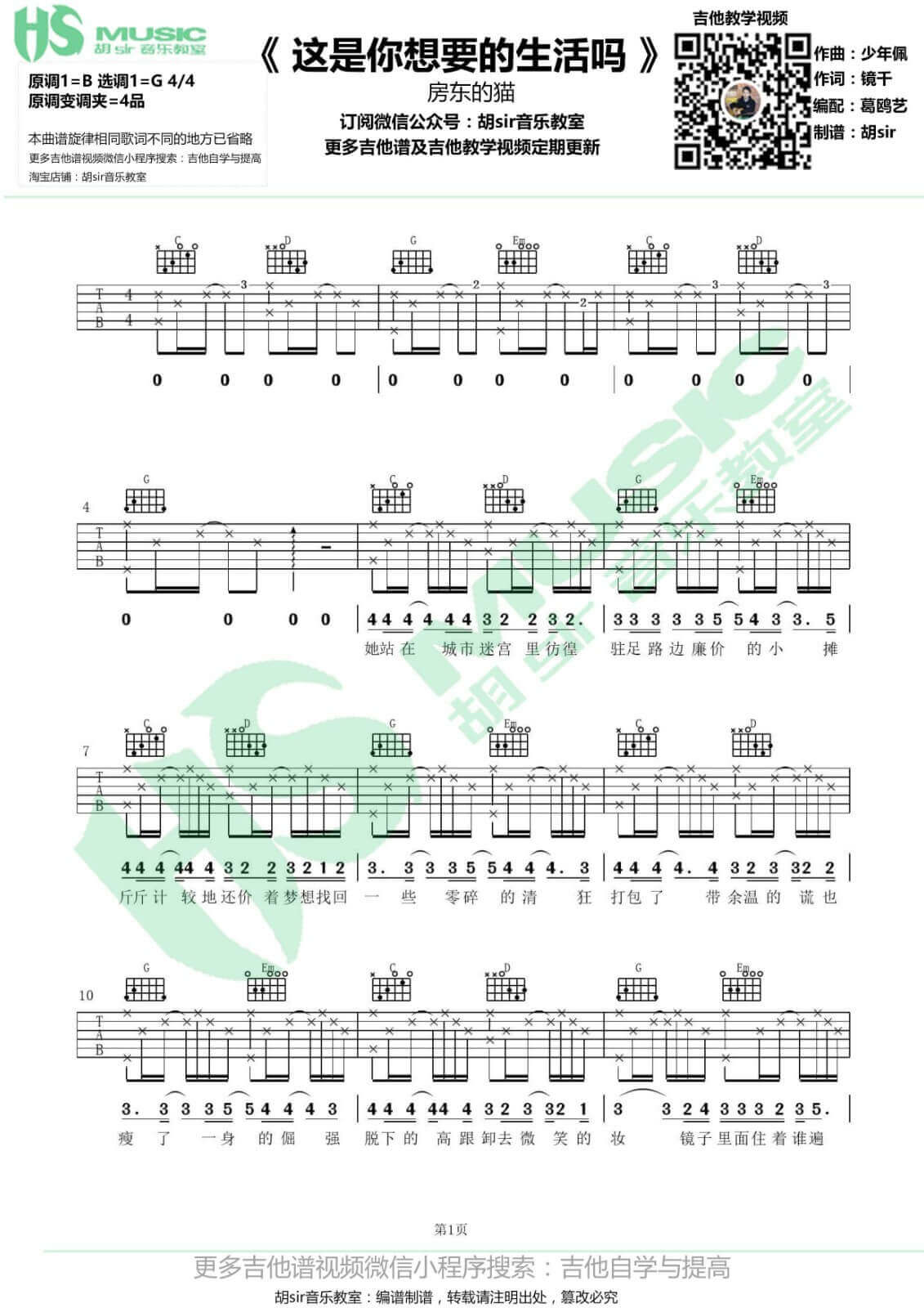 曲谱介绍: 这是你想要的生活吗吉他谱,有胡sir音乐教室编配,采用了G调指法。除了这首谱以外,我害怕高清版吉他谱也非常不错,速度去围观一下吧!