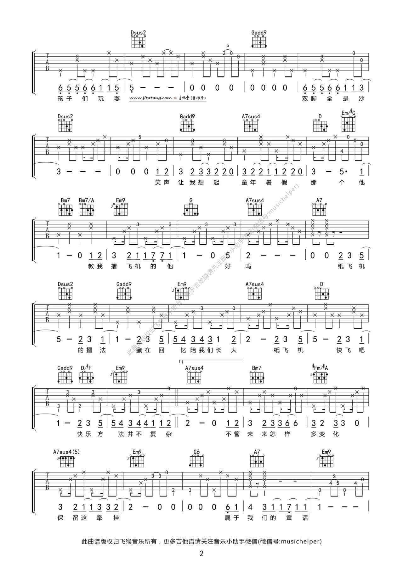 当前位置:琴谱网>吉他弹唱>纸飞机