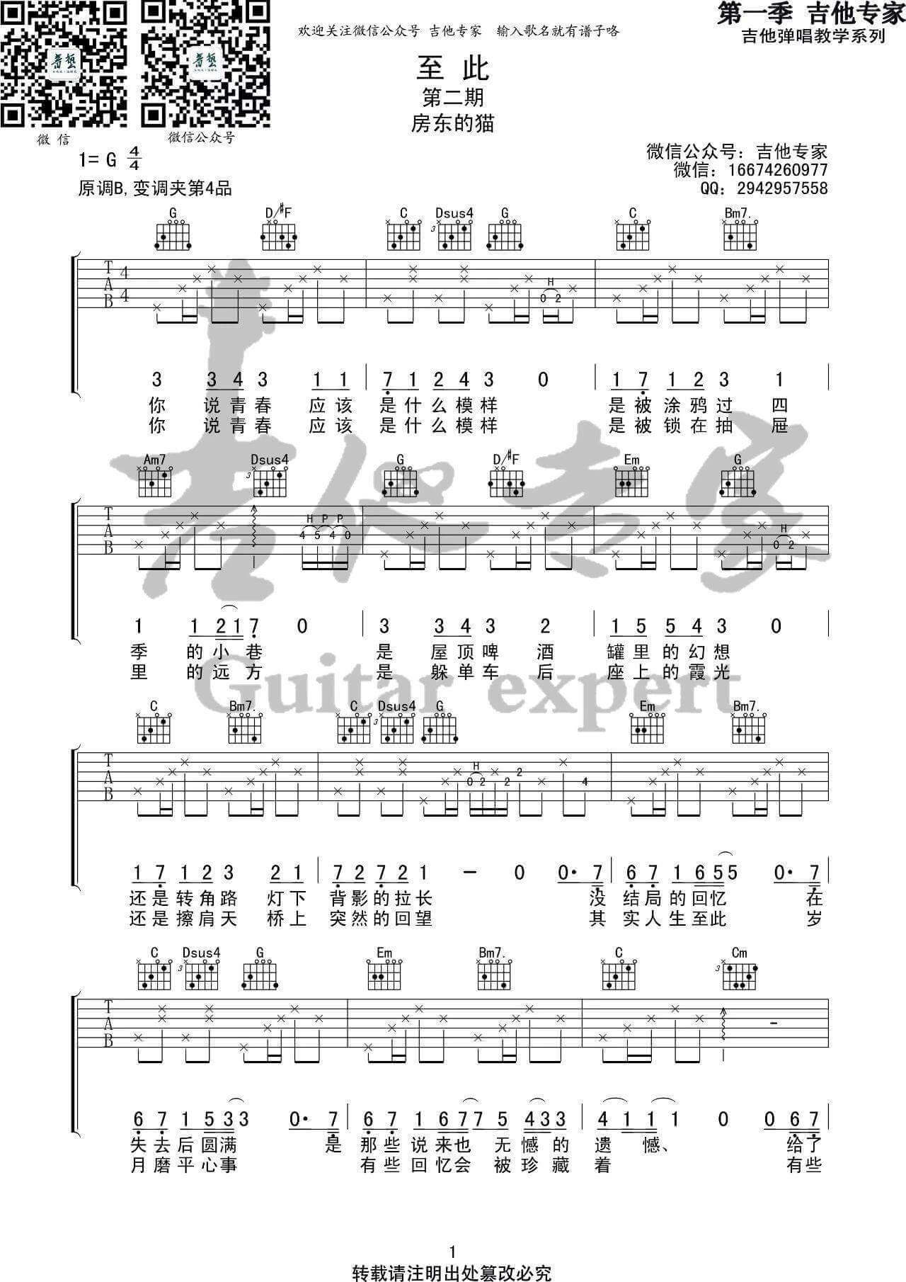 至此吉他谱 - 房东的猫 - G调吉他弹唱谱