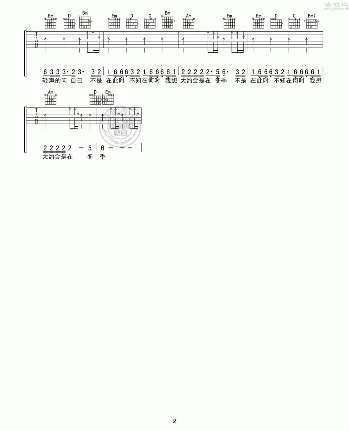 当前位置:琴谱网>吉他弹唱>大约在冬季