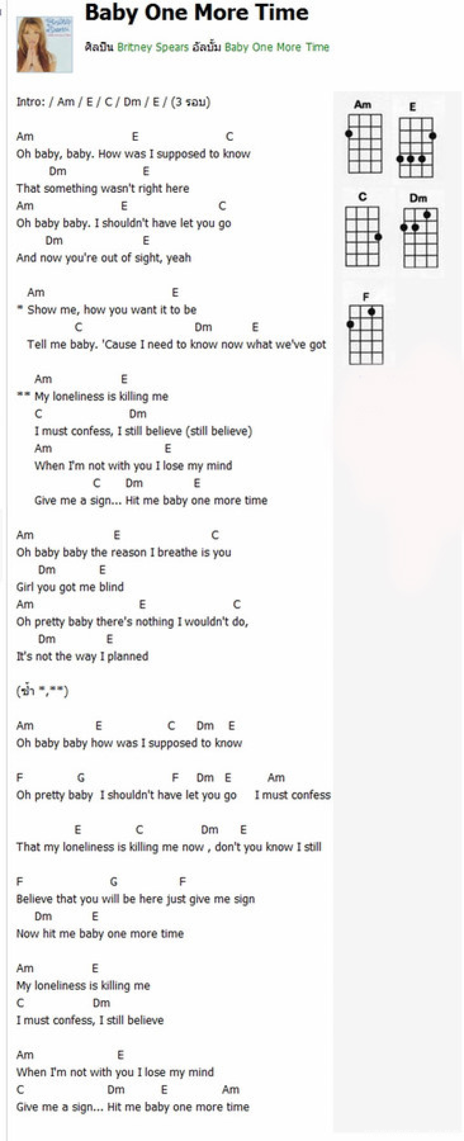 曲谱介绍: 布兰妮《Baby one more time》_尤克里里谱