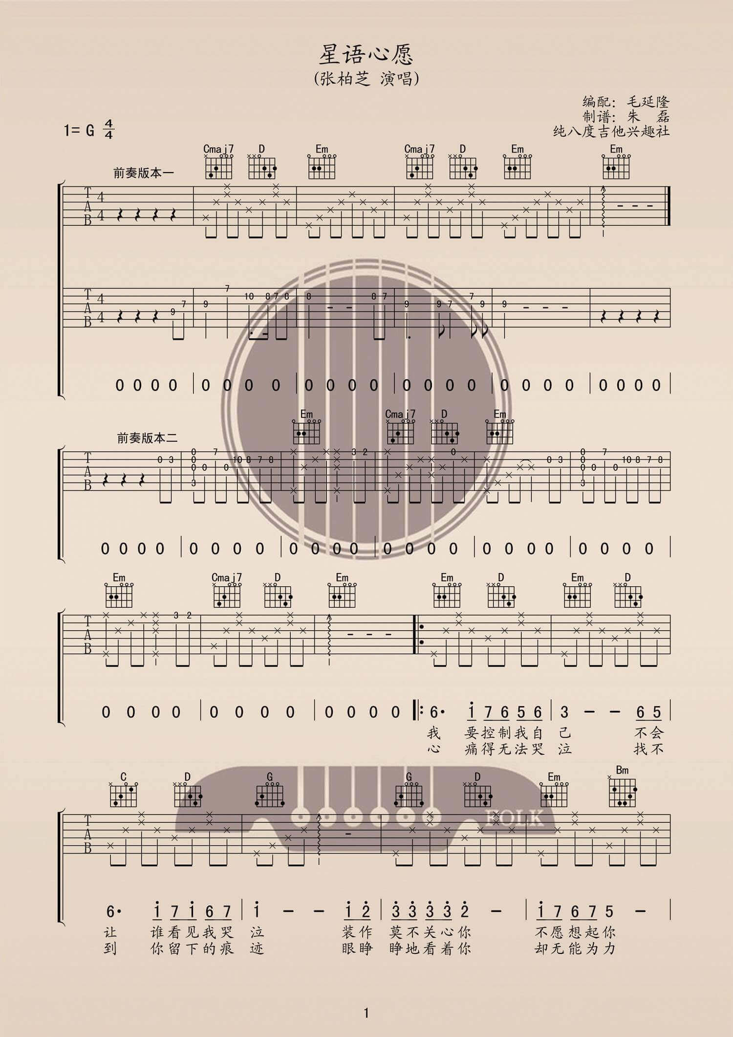 吉他弹唱G调来源:纯八度吉他兴趣社260 浏览2024-02-08 19:29发布图谱共2页