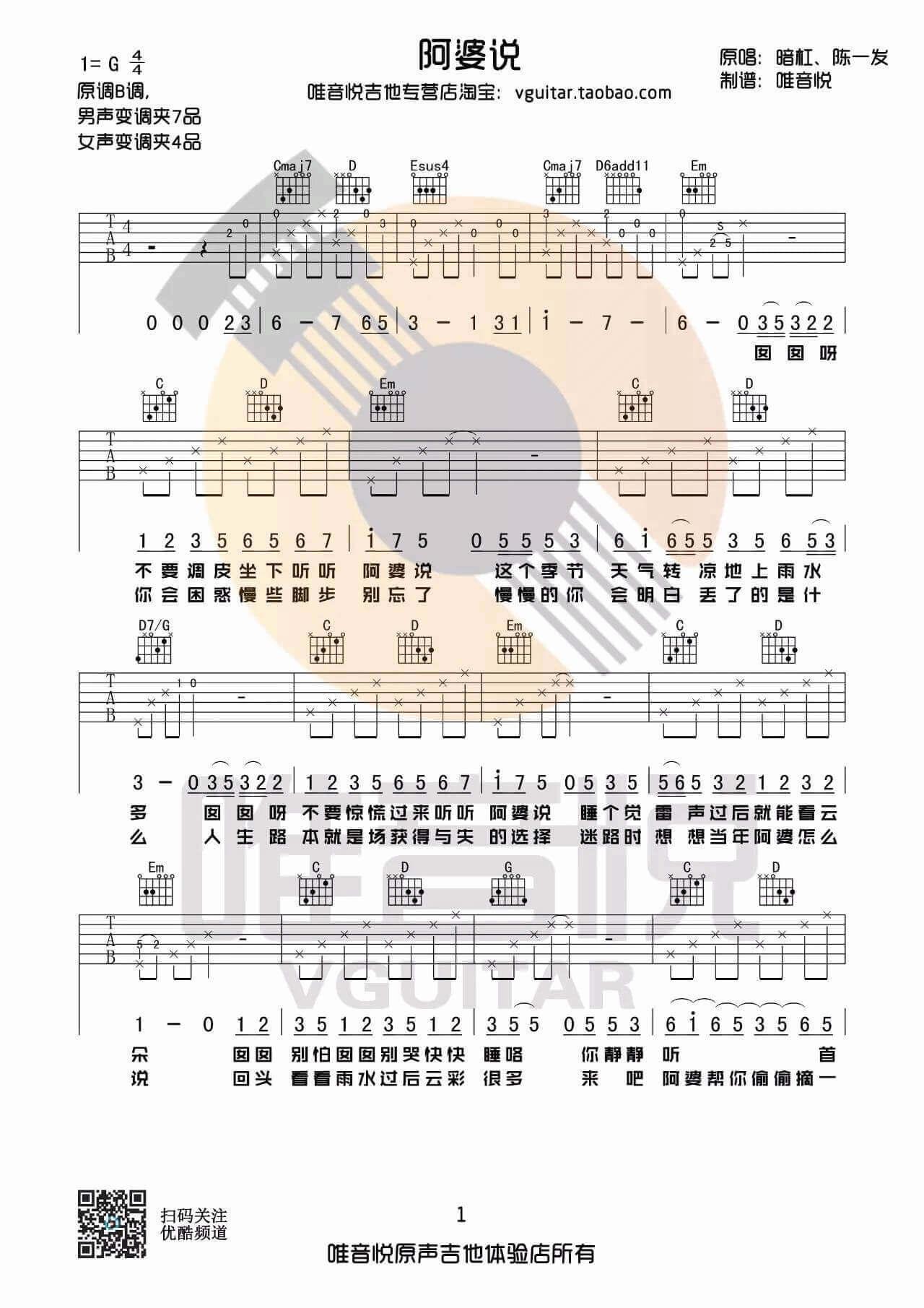 当前位置:琴谱网>吉他弹唱>阿婆说
