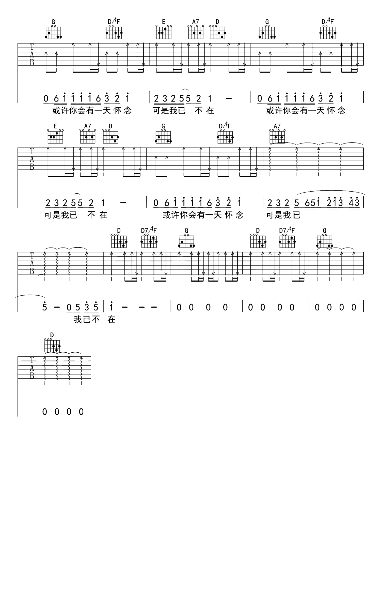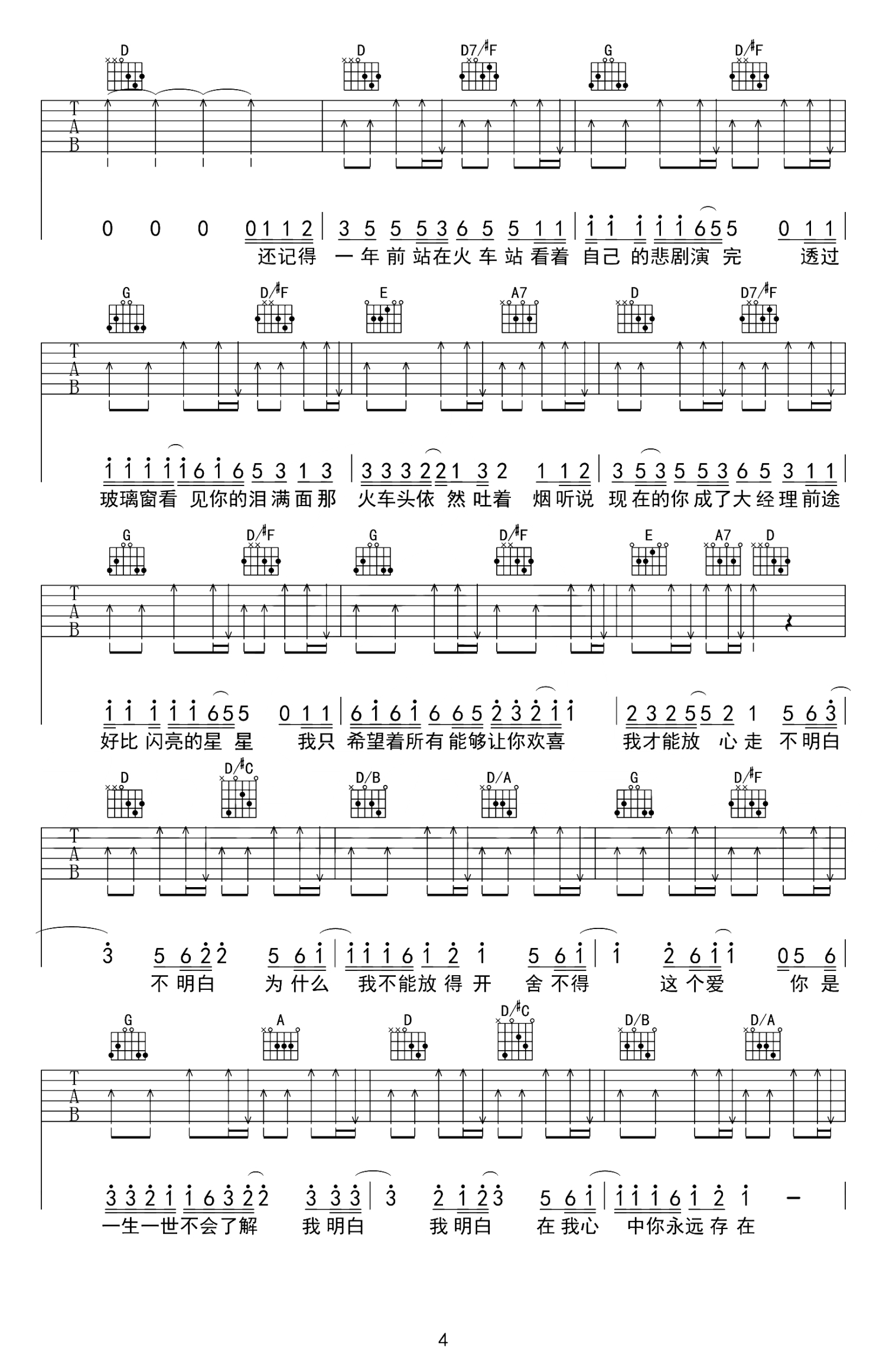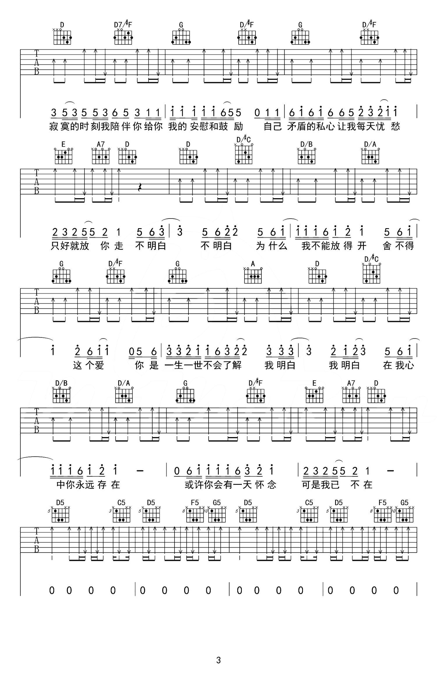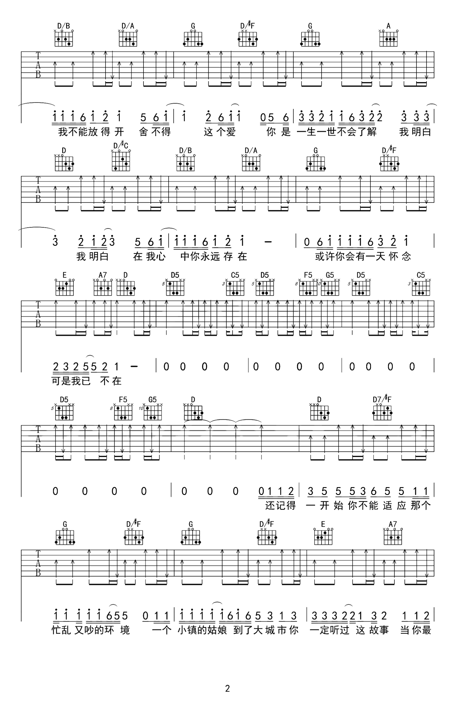 吉他弹唱D调来源:牧马人乐器--张路明4430 浏览2018-03-19 13:34发布图谱共5页