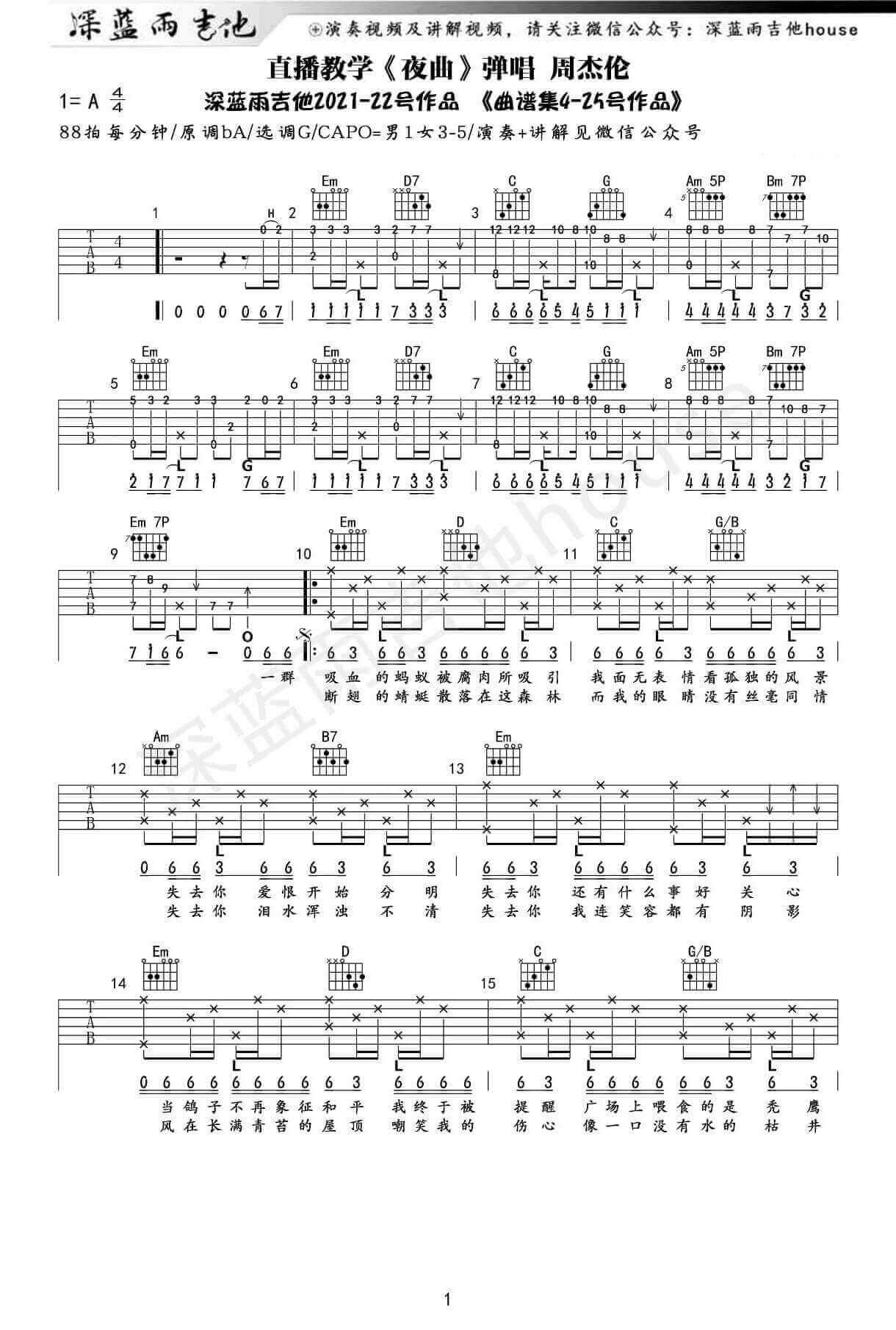 夜曲吉他谱 - 周杰伦 - G调吉他弹唱谱