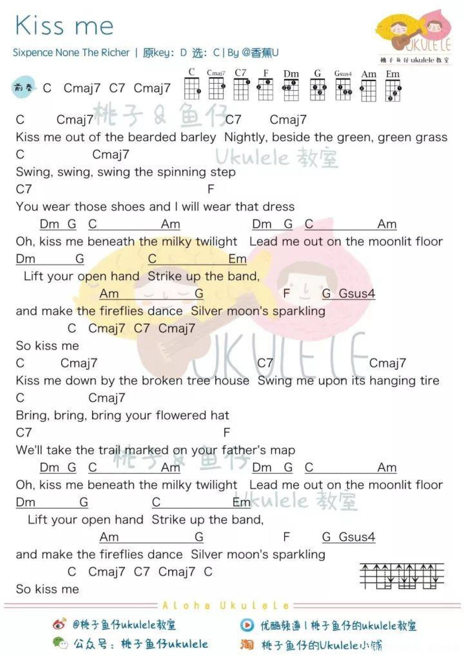 曲谱介绍: Sixpence None The Richer《Kiss me》_C调尤克里里谱