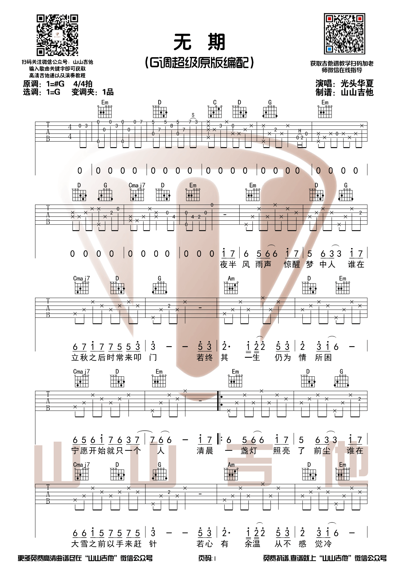 无期吉他谱 - 光头华夏 - G调吉他弹唱谱