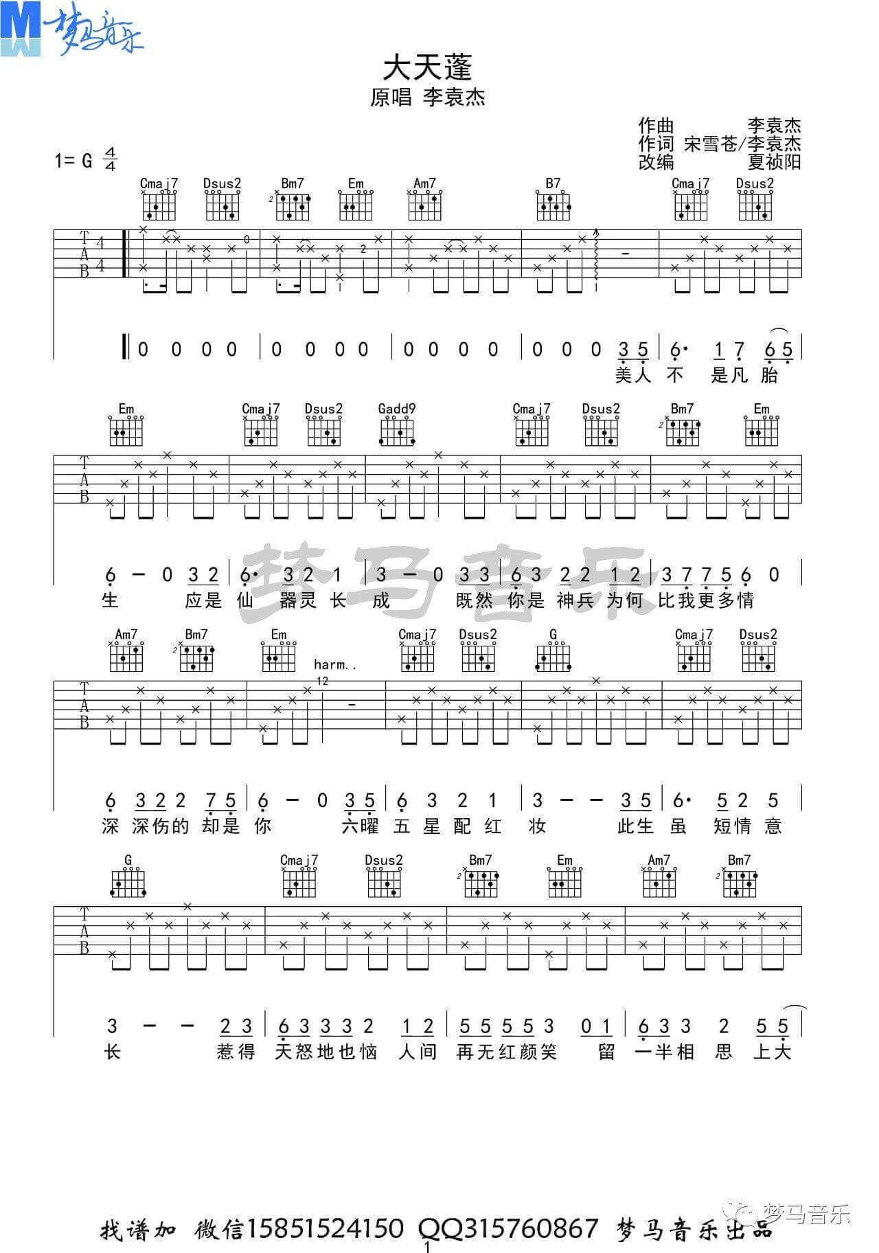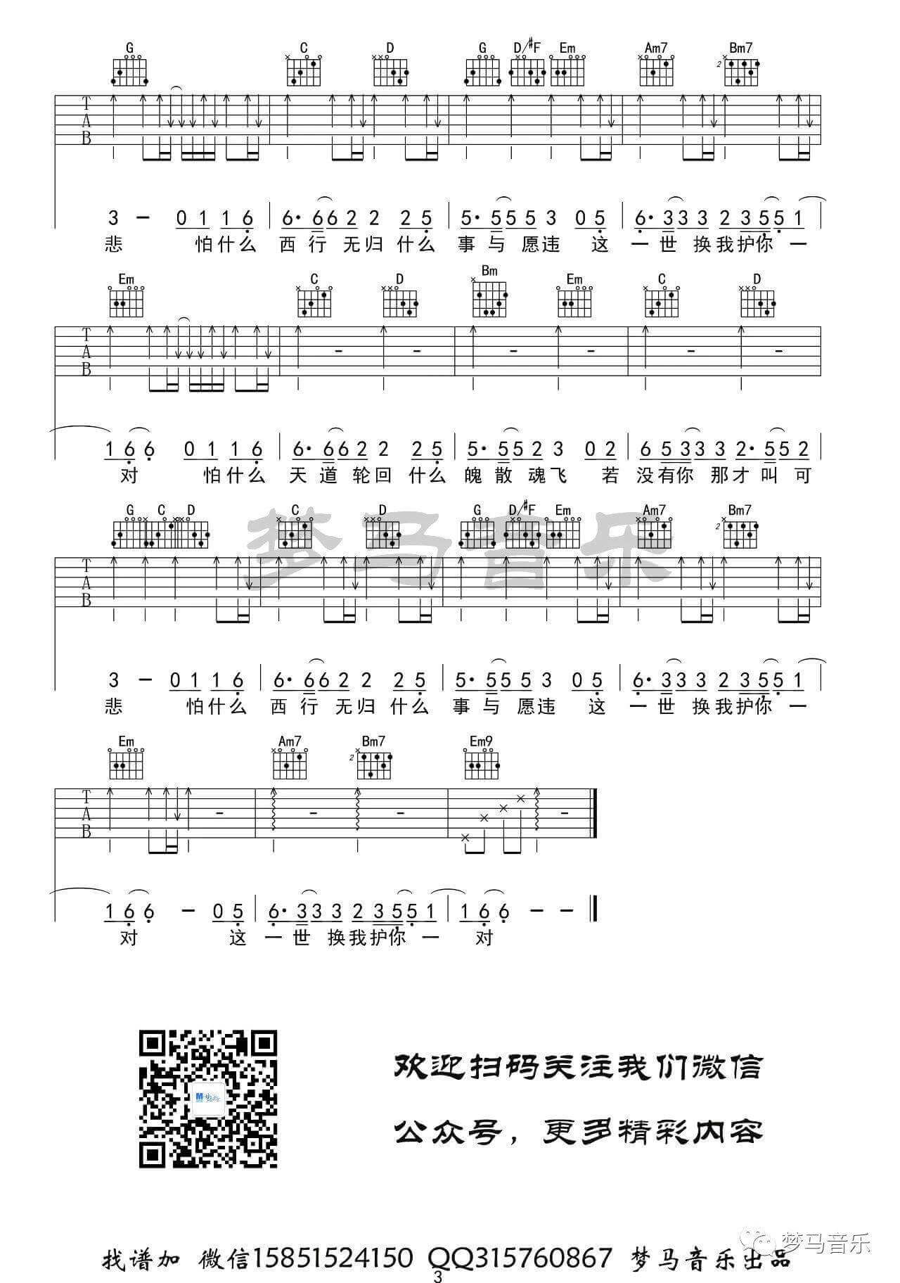 吉他弹唱G调来源:G调版六线谱-梦马音乐328 浏览2024-02-08 21:06发布图谱共3页