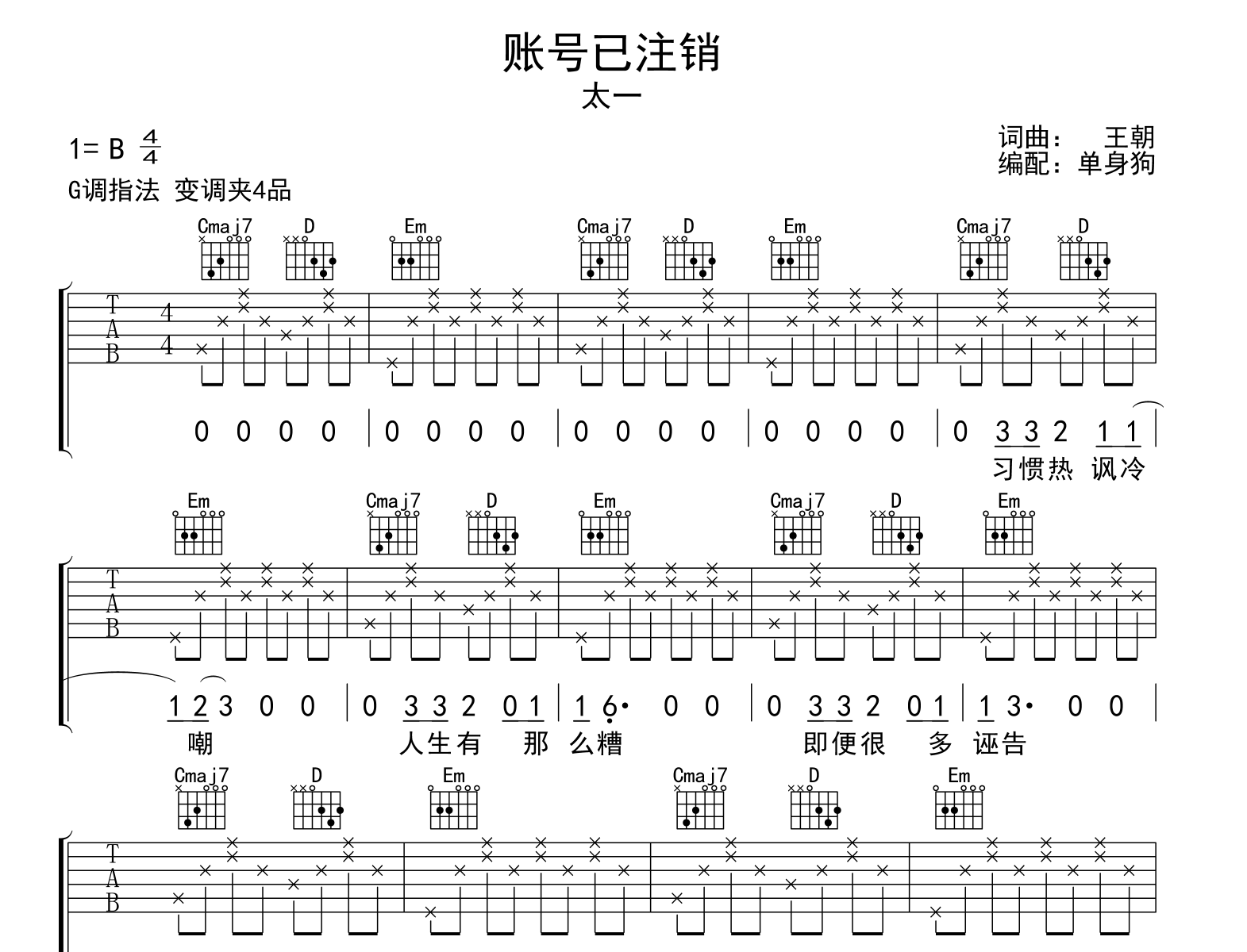 账号已注销吉他谱 - 太一 - G调吉他弹唱谱