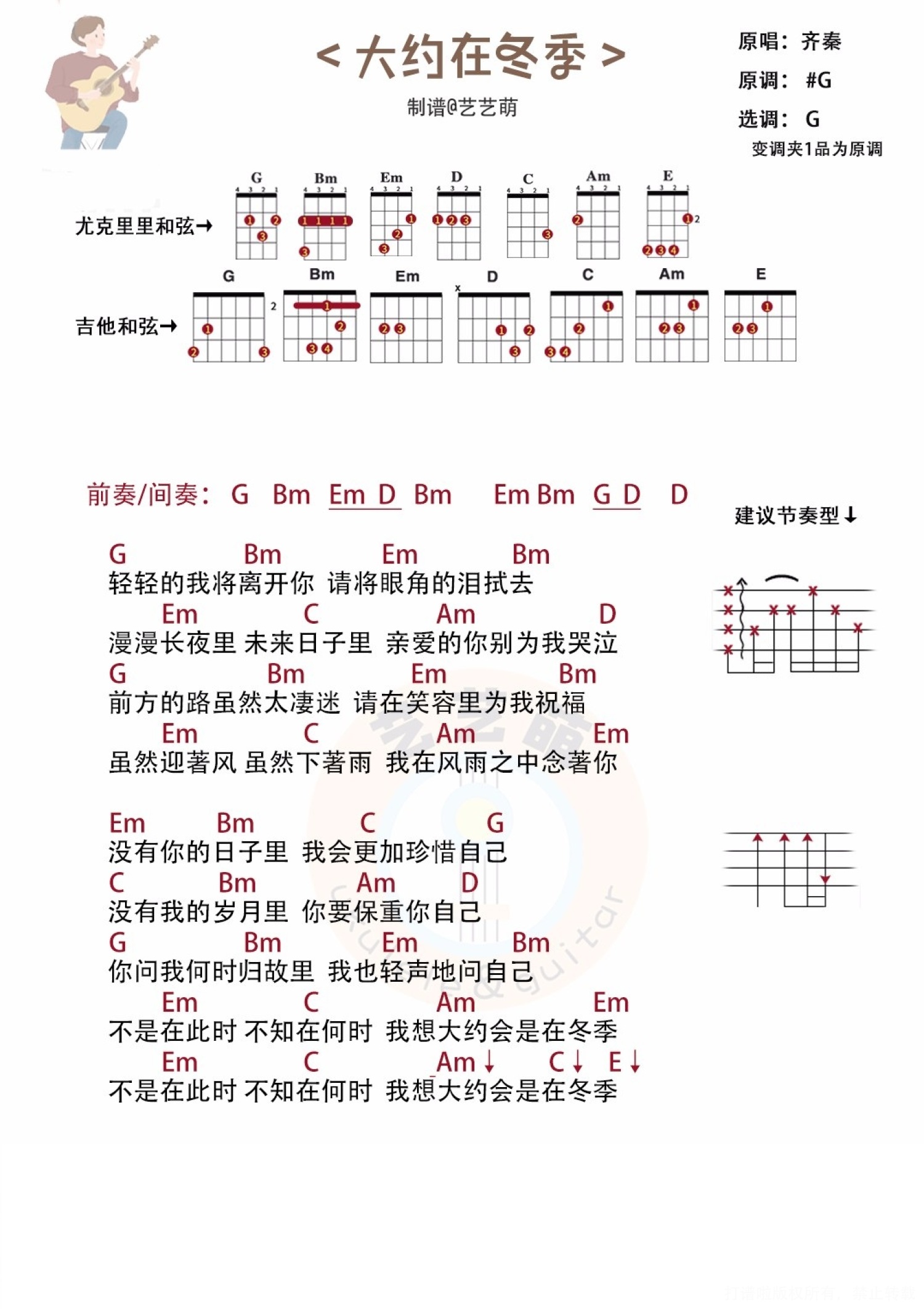 曲谱介绍: 齐秦《大约在冬季》_G调尤克里里谱