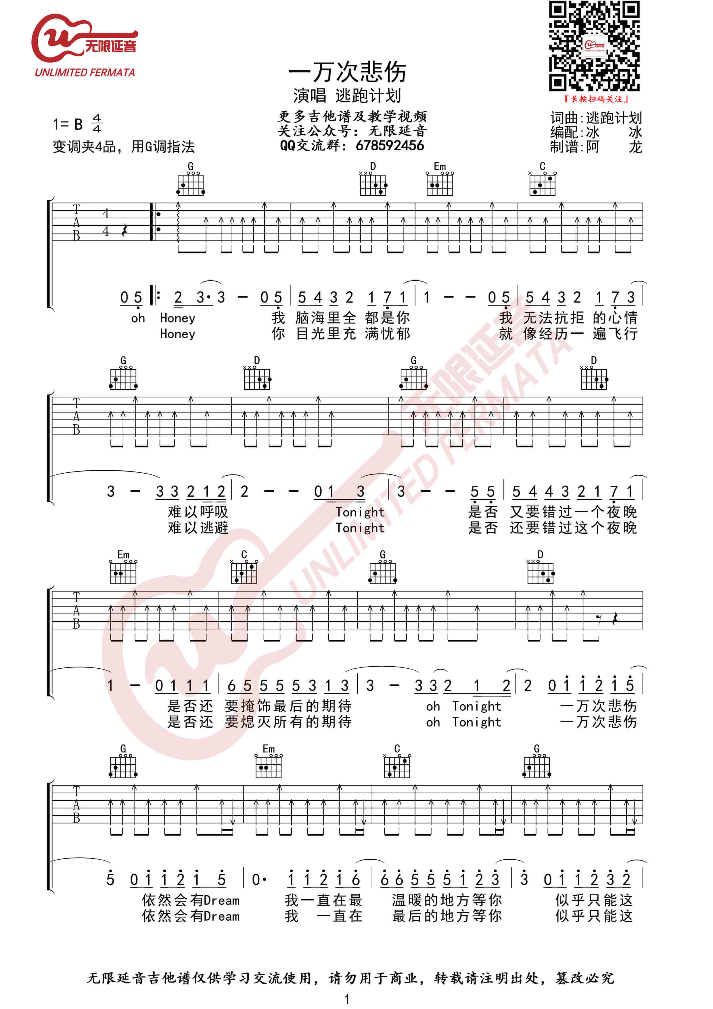 一万次悲伤吉他谱 - 逃跑计划 - G调吉他弹唱谱