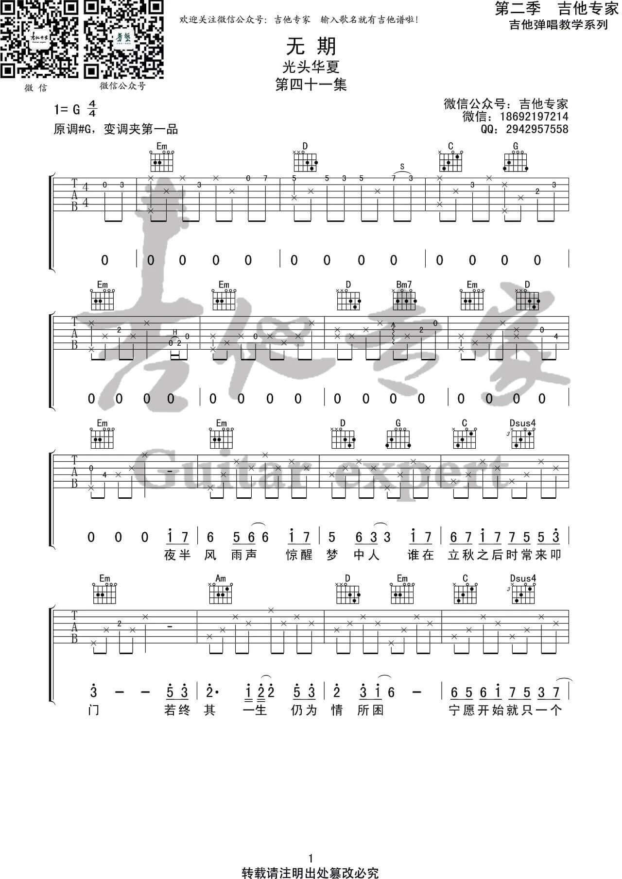 无期吉他谱 - 光头华夏 - G调吉他弹唱谱