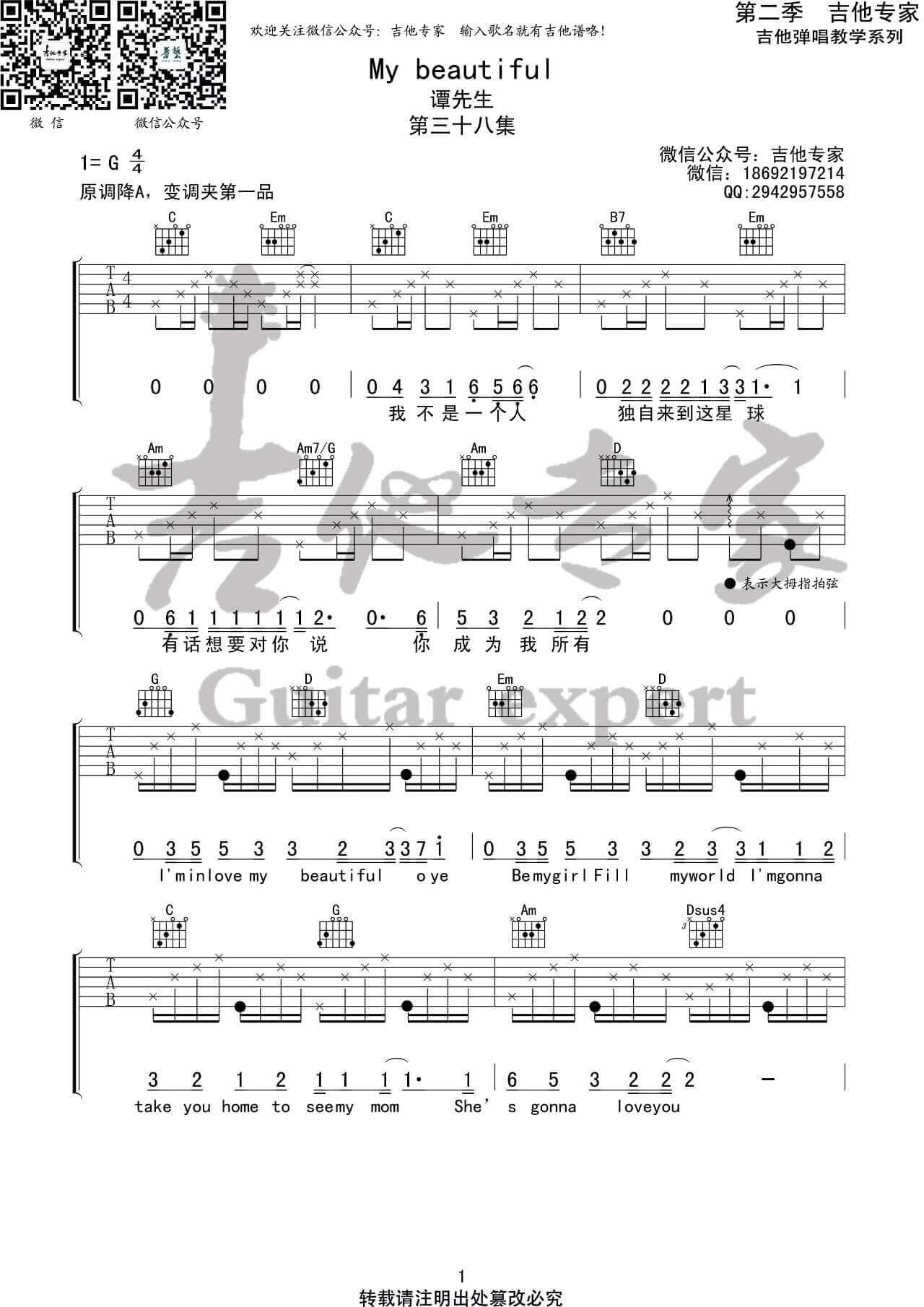 My beautiful吉他谱 - 谭先生 - G调吉他弹唱谱