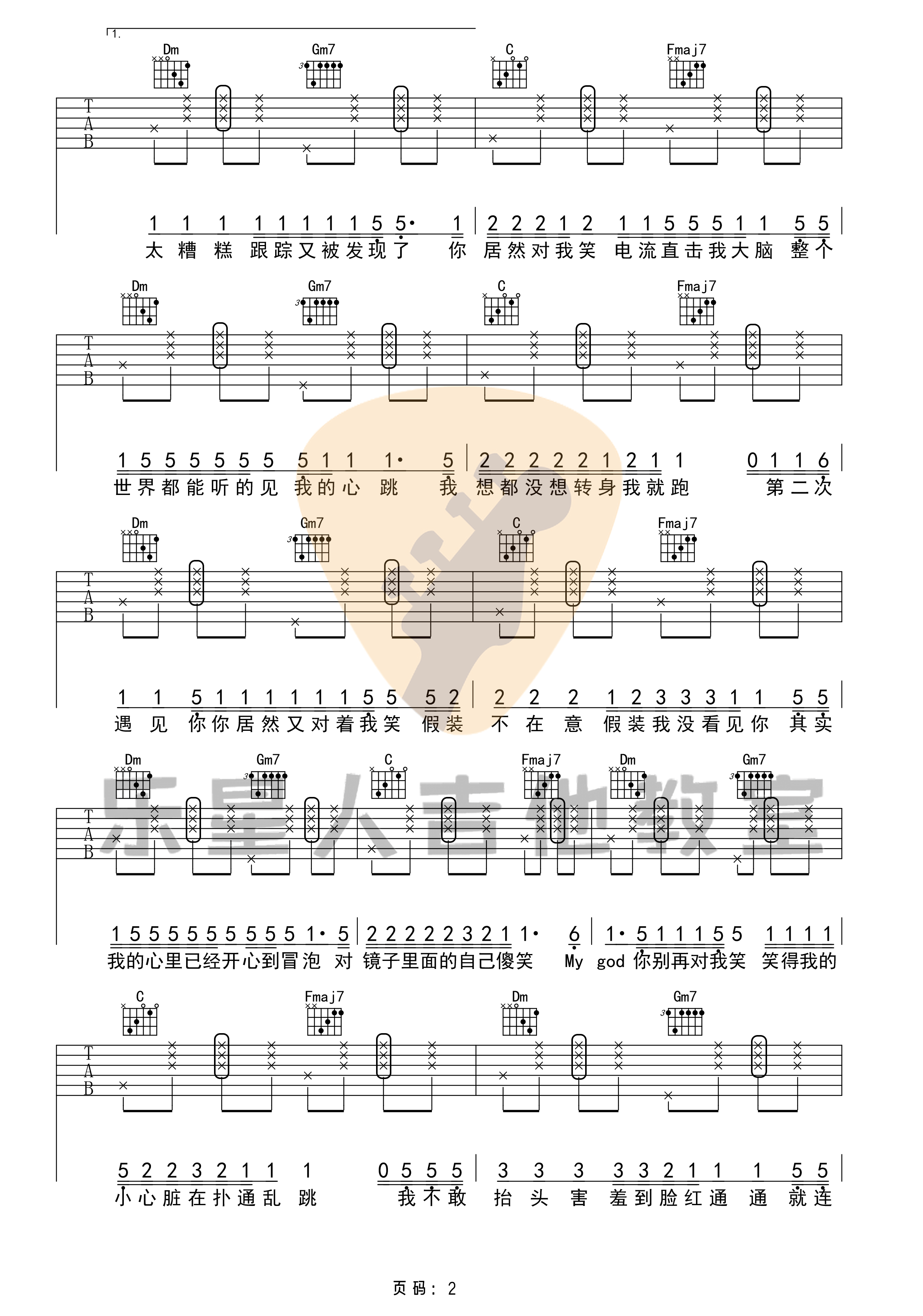 曲谱介绍: 一首歌朗朗上口小情歌《零几年听的情歌》,描述了一个很可爱的暗恋的故事,像极了初恋,特别甜。 来自乐星人吉他教室编配《零几年听的情歌》吉他谱,这首歌曲整体难度系数不大,F调指法,中间加入了右手击弦的技巧,需要把前奏练习好就可以了。