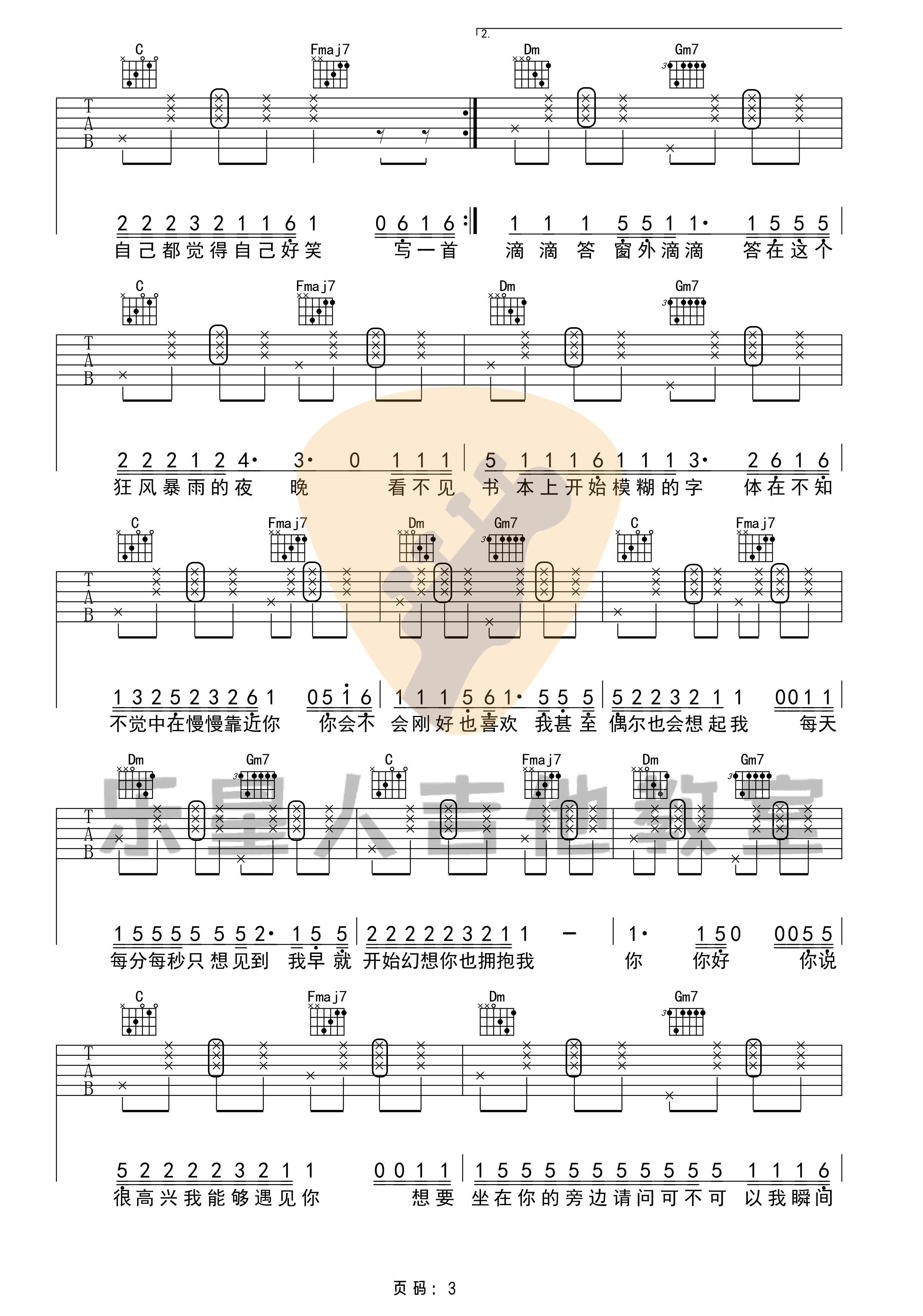 零几年听的情歌吉他谱 - 乐星人吉他教室 - F调吉他弹唱谱 - 原版