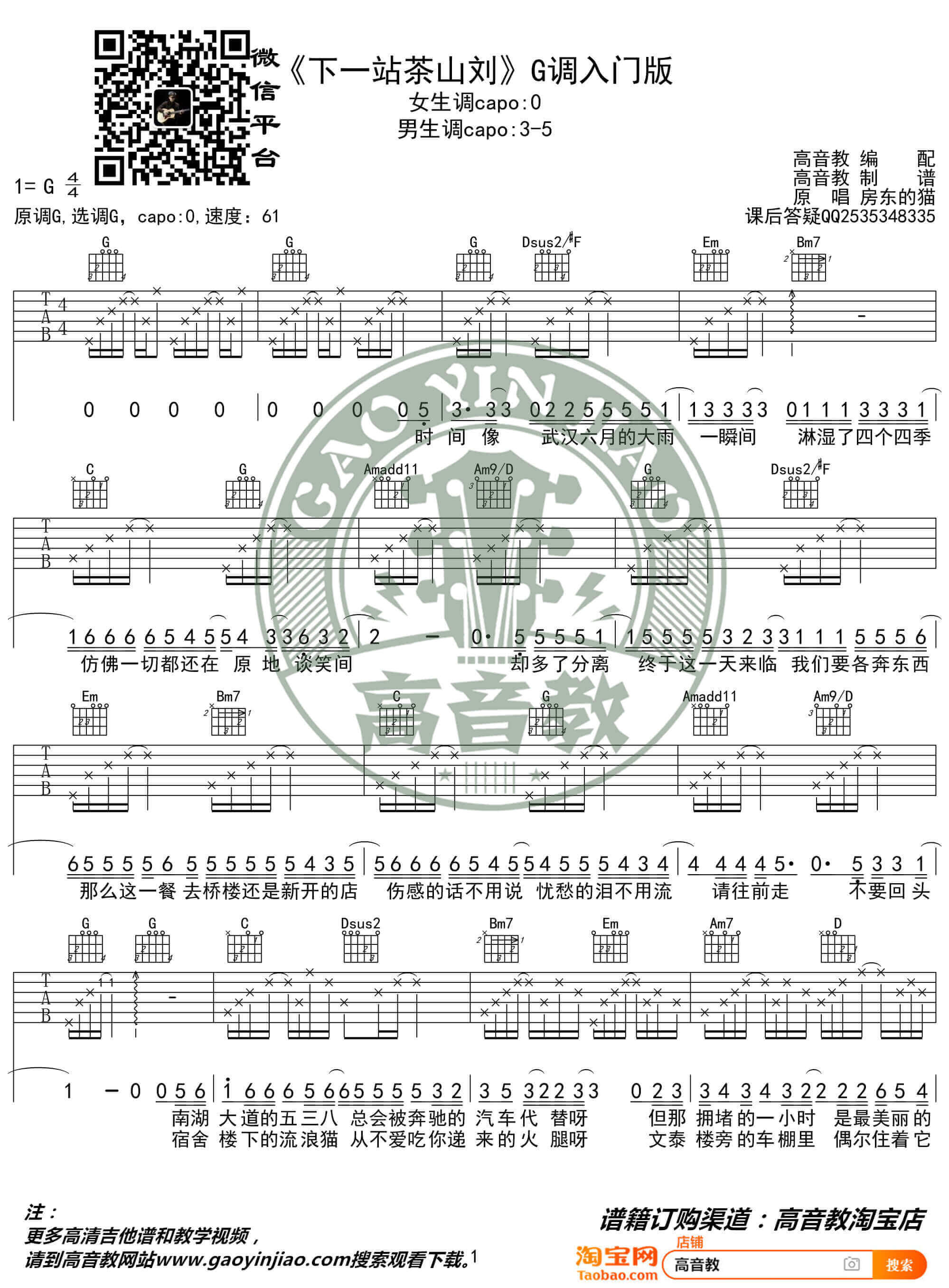 下一站茶山刘吉他谱 - 房东的猫 - G调吉他弹唱谱