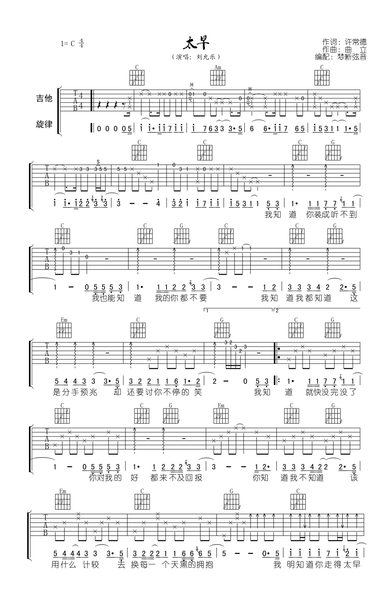 曲谱介绍: 刘允乐 太早吉他谱 C调高清版