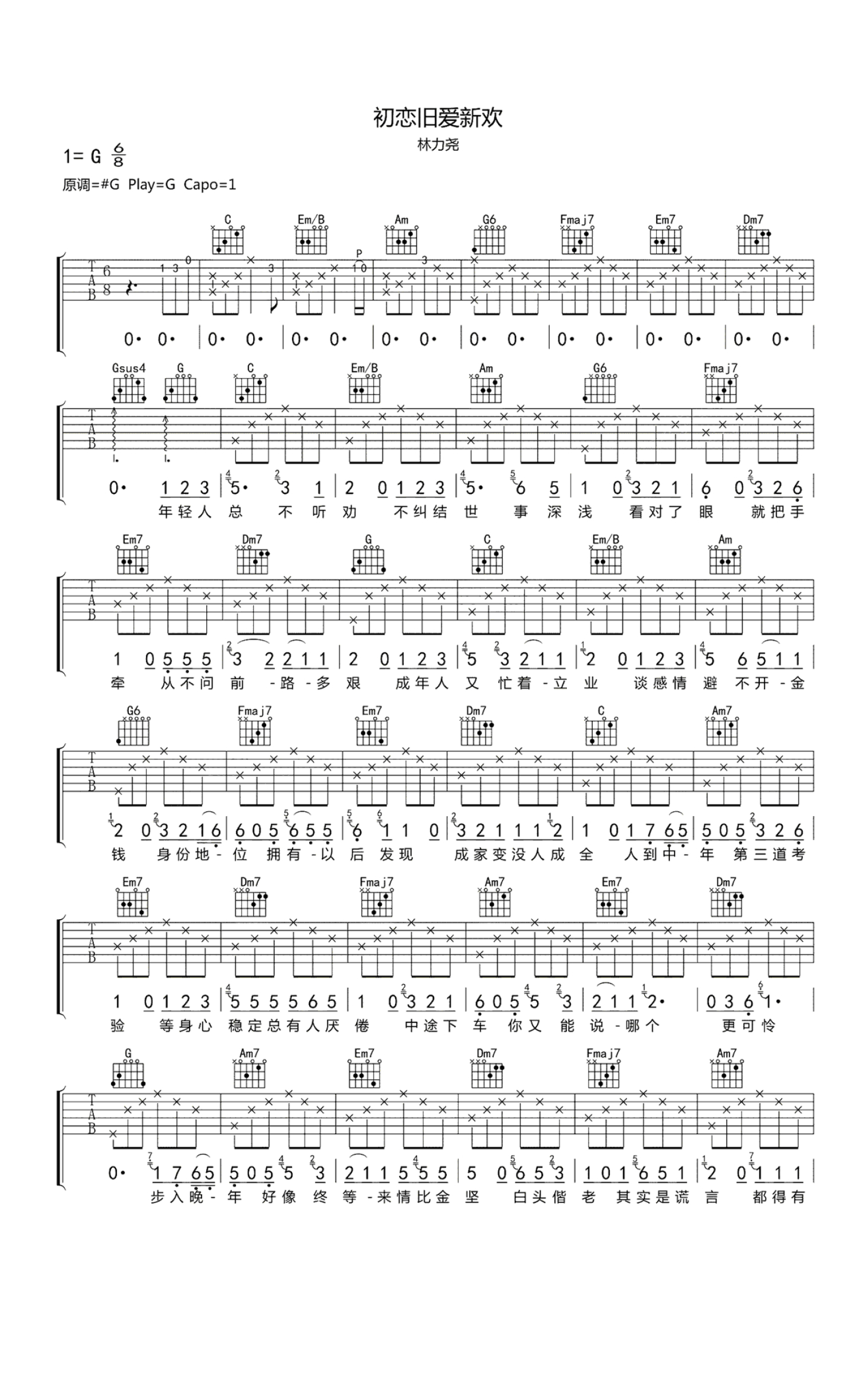 曲谱介绍: 初恋旧爱新欢吉他谱-林力尧