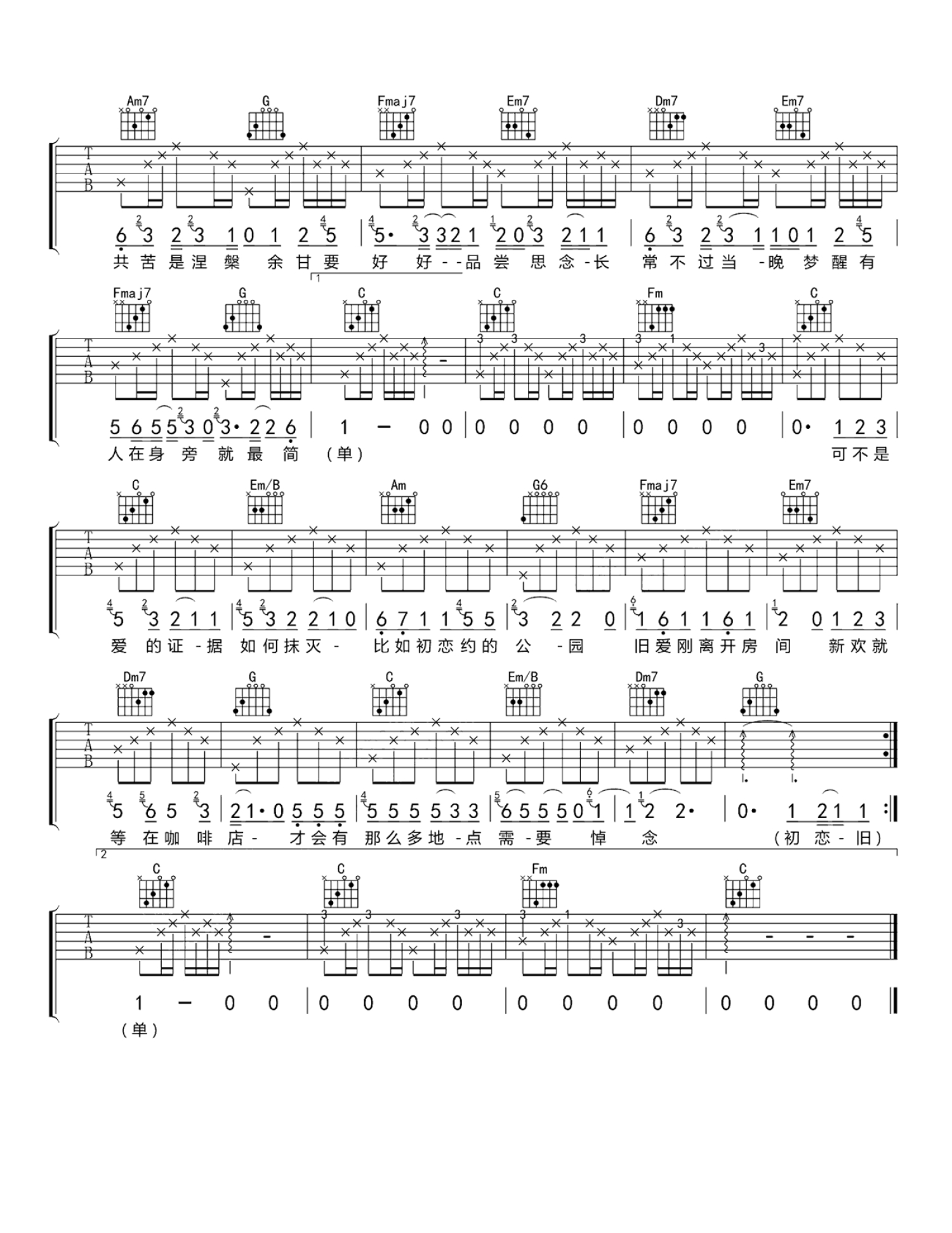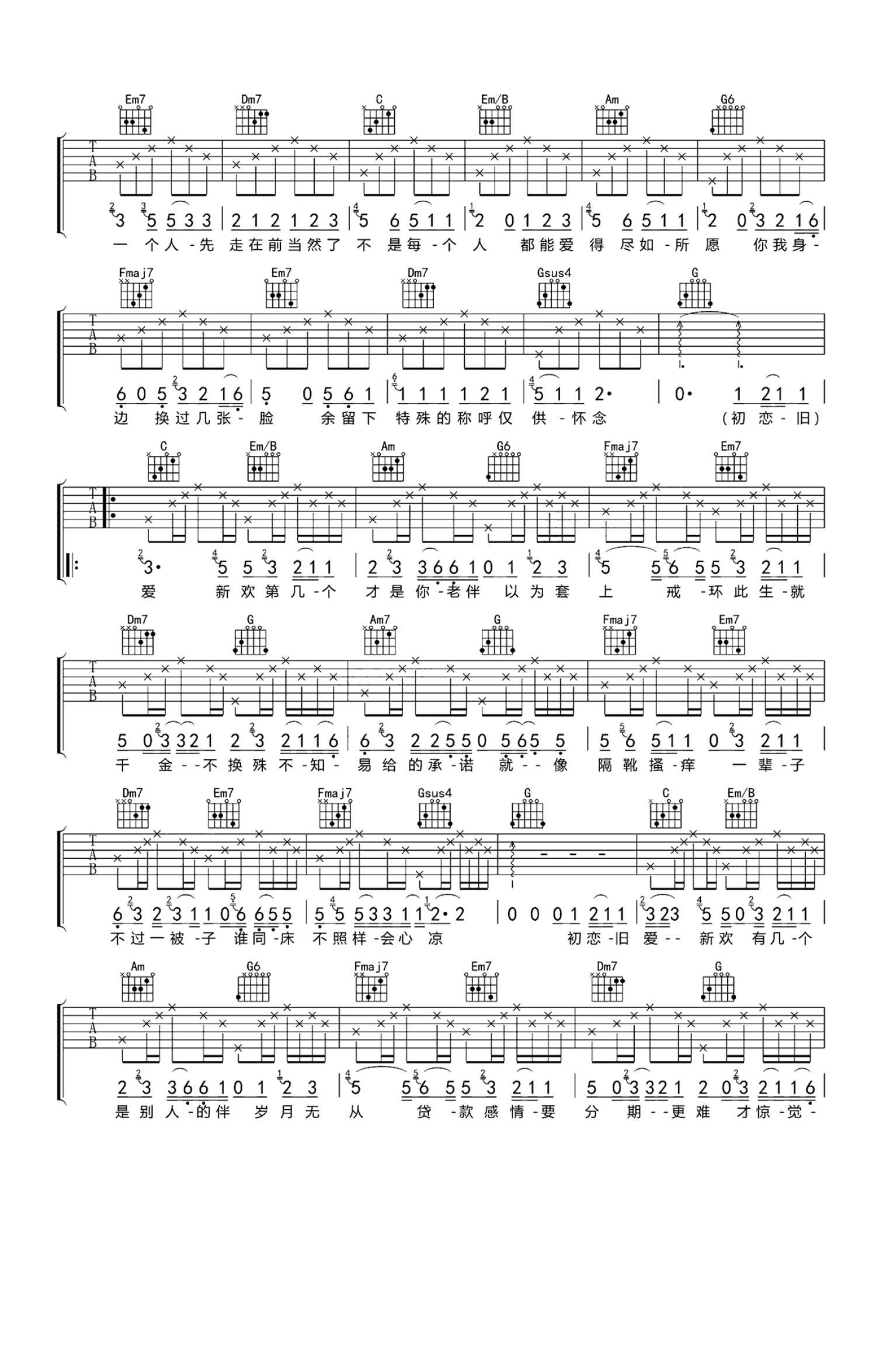 当前位置:琴谱网>吉他弹唱>初恋旧爱新欢