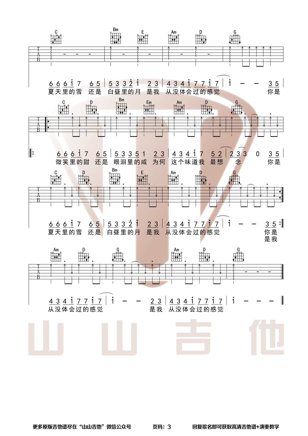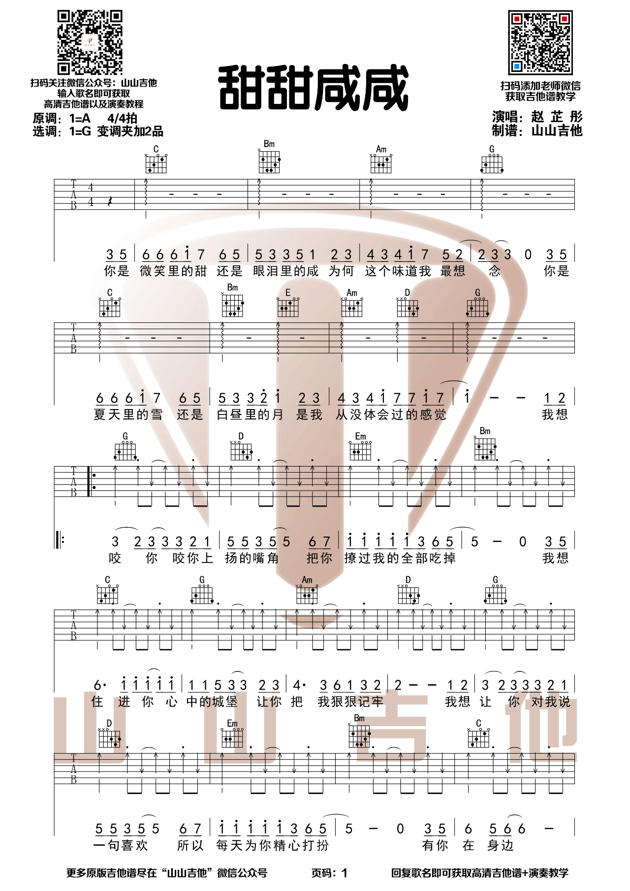 甜甜咸咸吉他谱 - 山山吉他 - G调吉他弹唱谱 - 原版