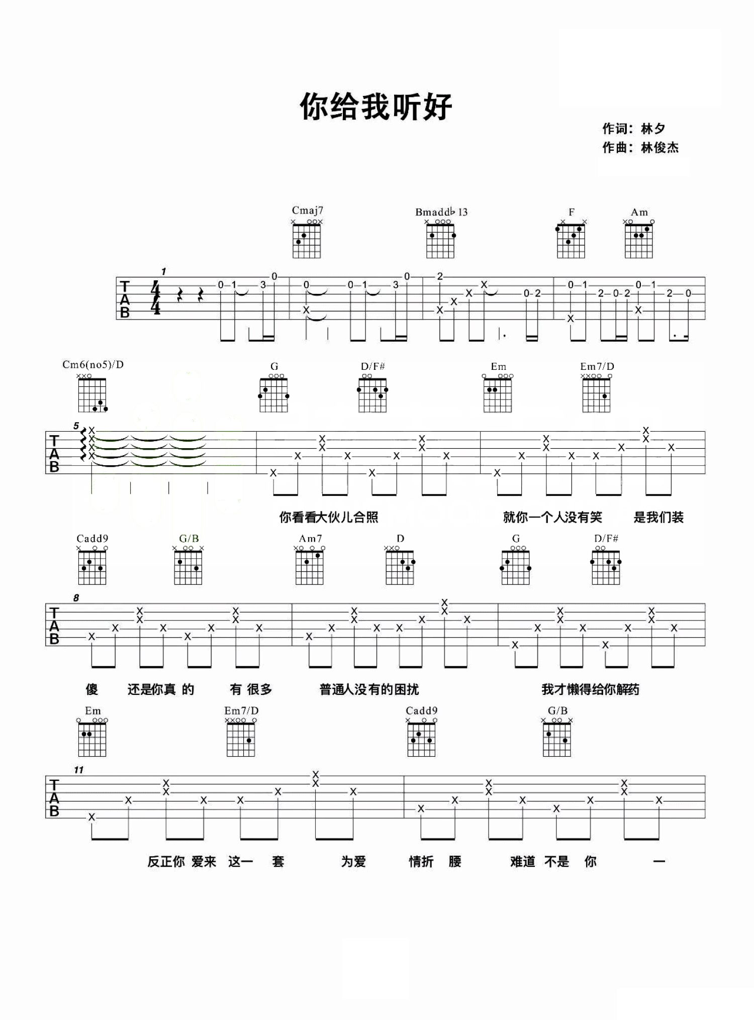 当前位置:琴谱网>吉他弹唱>你给我听好
