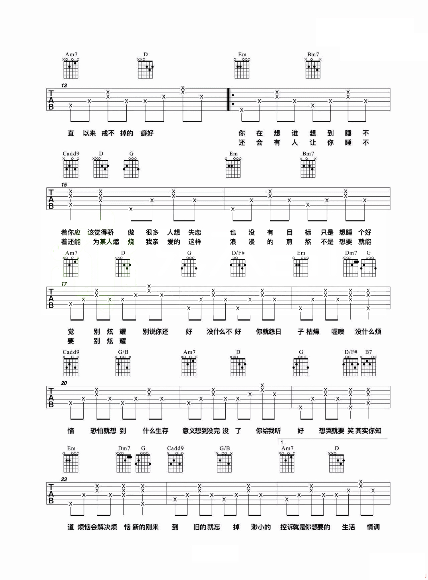 吉他弹唱C调来源:良好市民2445 浏览2019-08-20 20:24发布图谱共3页