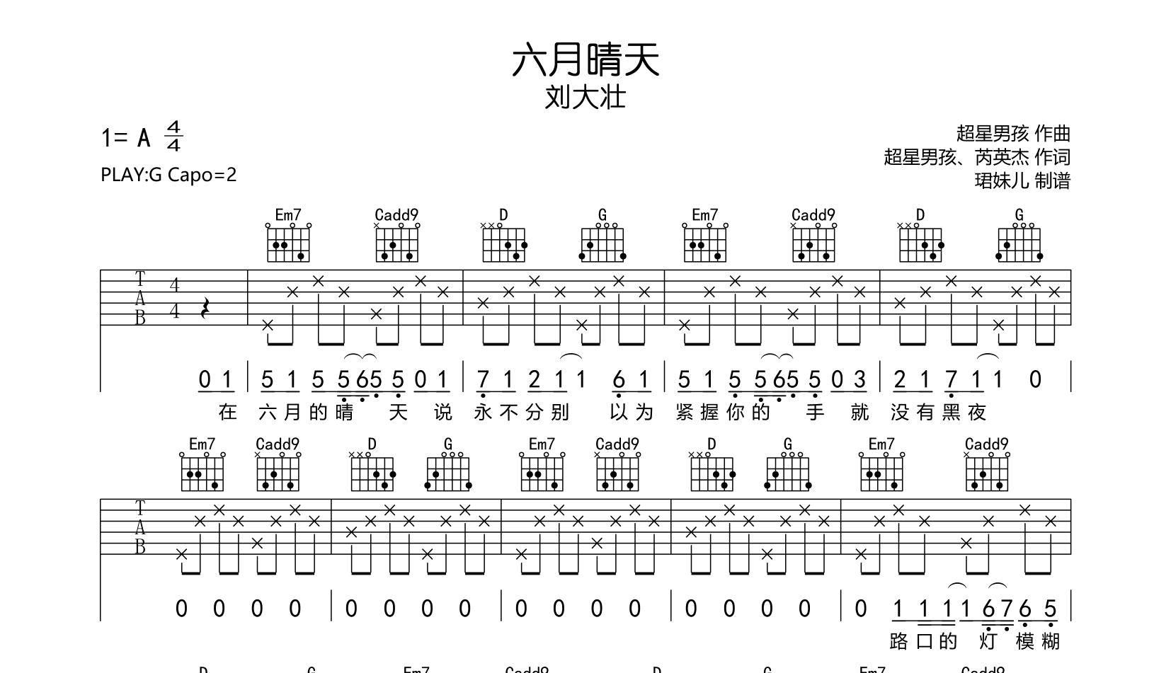 六月晴天吉他谱 - 刘大壮 - G调吉他弹唱谱 - 原版