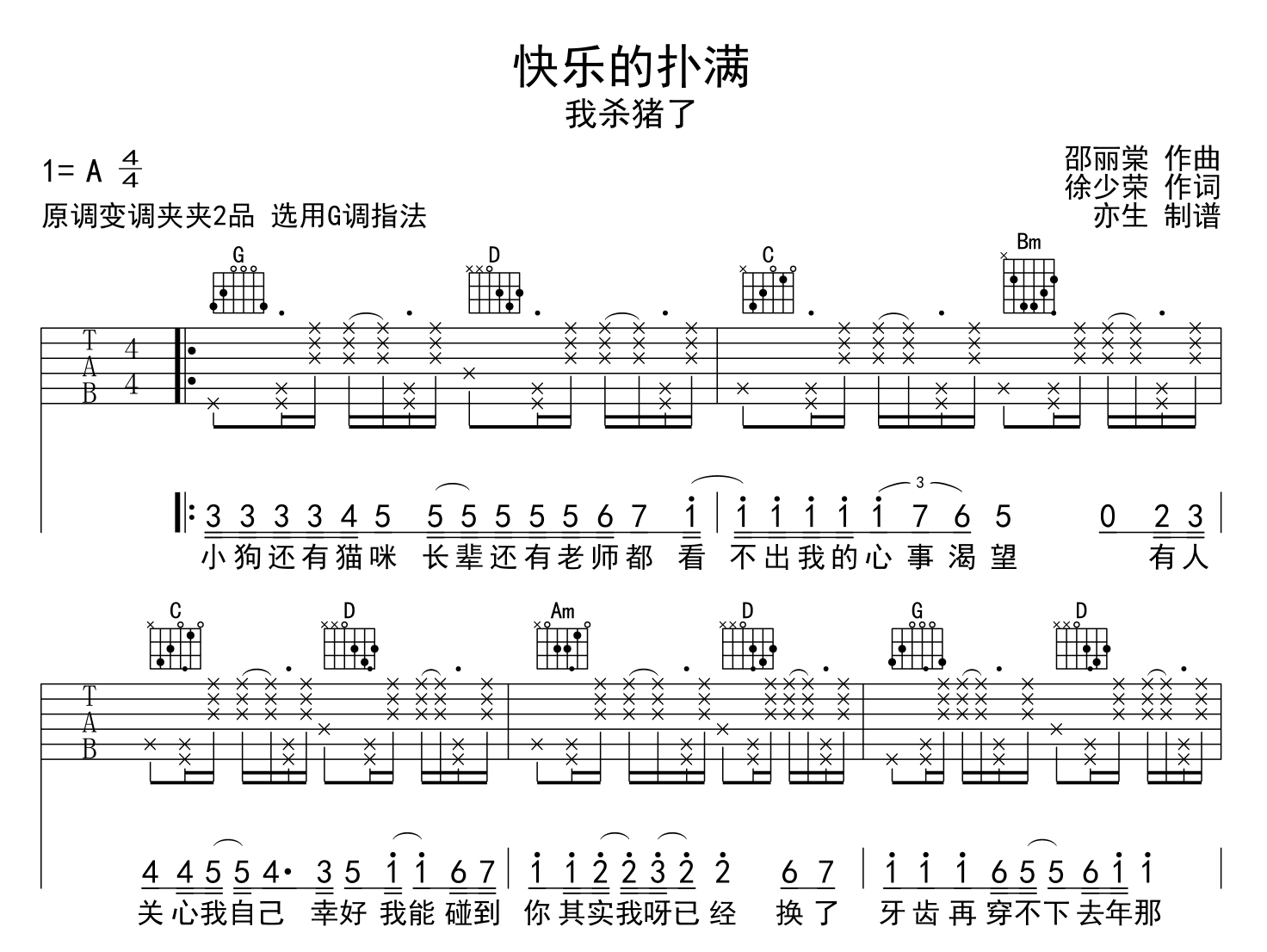 快乐的扑满吉他谱 - 我杀猪了 - G调吉他弹唱谱 - 原版