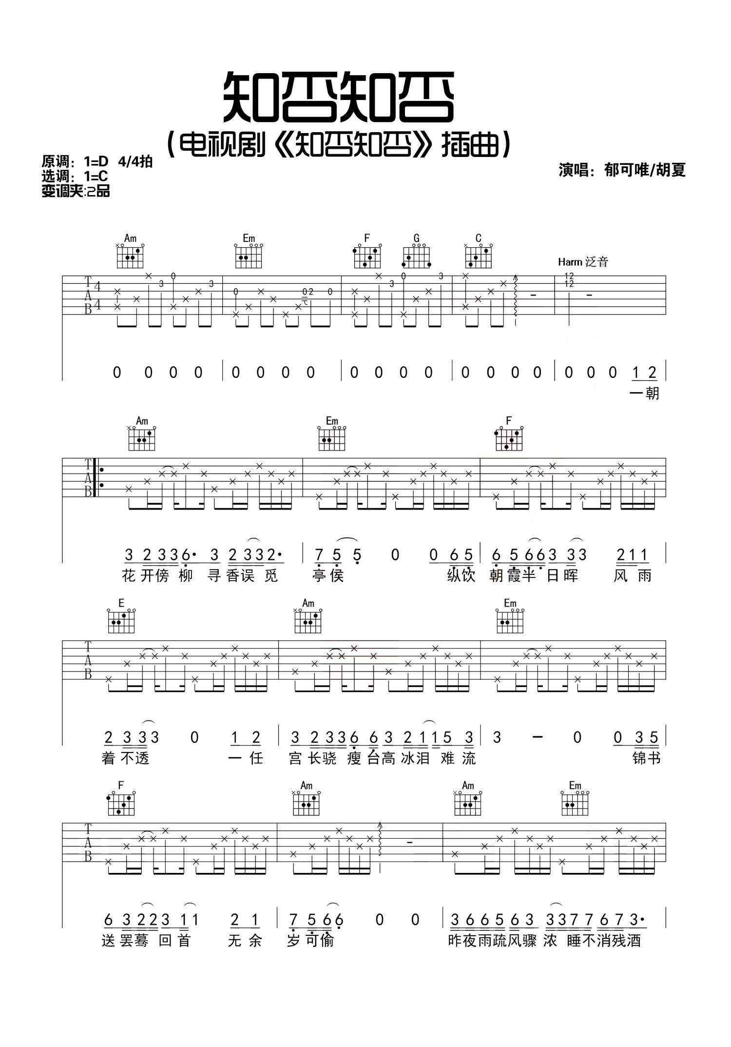 知否知否吉他谱 - 胡夏/郁可唯 - C调吉他弹唱谱